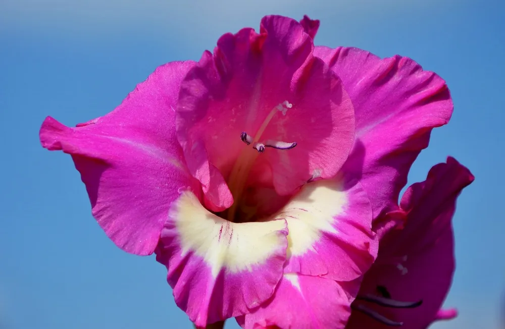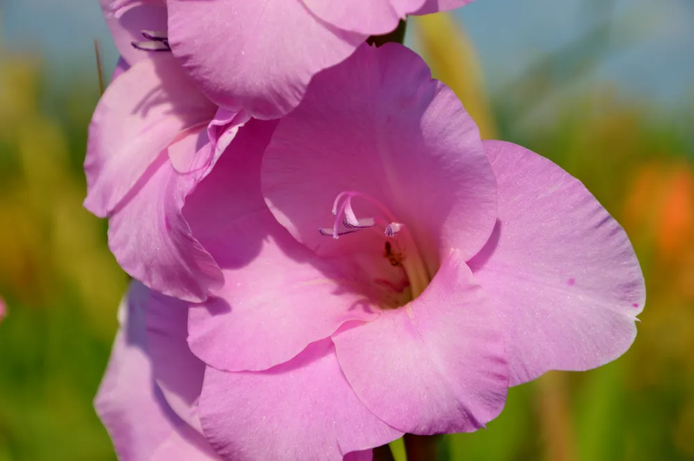 Гладиолус Баттерфляй Колорс характеризуется крупными, махровыми цветками с нежно-лосовым оттенком. Каждый цветок словно создан природой для того, чтобы привлечь к себе внимание: его лепестки имеют необычную форму, которая создает впечатление взмывающих крыльев бабочки. Цветение этого сорта длится в течение всего лета и ранней осени, радуя глаз яркими красками.