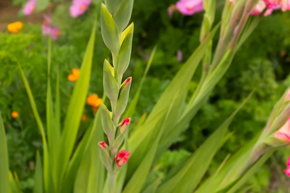 Для получения пышных соцветий гладиолуса Димитрий Солунский необходимо проводить формирование куста. Это означает удаление боковых побегов, которые появляются в пазухах листьев. Удаление боковых побегов направляет всю энергию растения на развитие главного цветоноса.