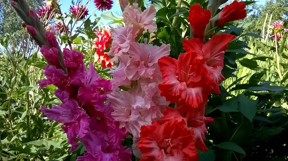 Другие сорта гладиолусов могут быть более светлой окраски, иметь сложную махровую форму цветка или отличаться более компактным ростом.