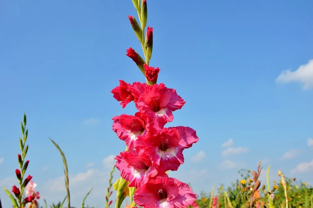 Также во время вегетации рекомендуется периодически подвязывать стебли гладиолуса к опоре, чтобы они не сломались под тяжестью цветков.