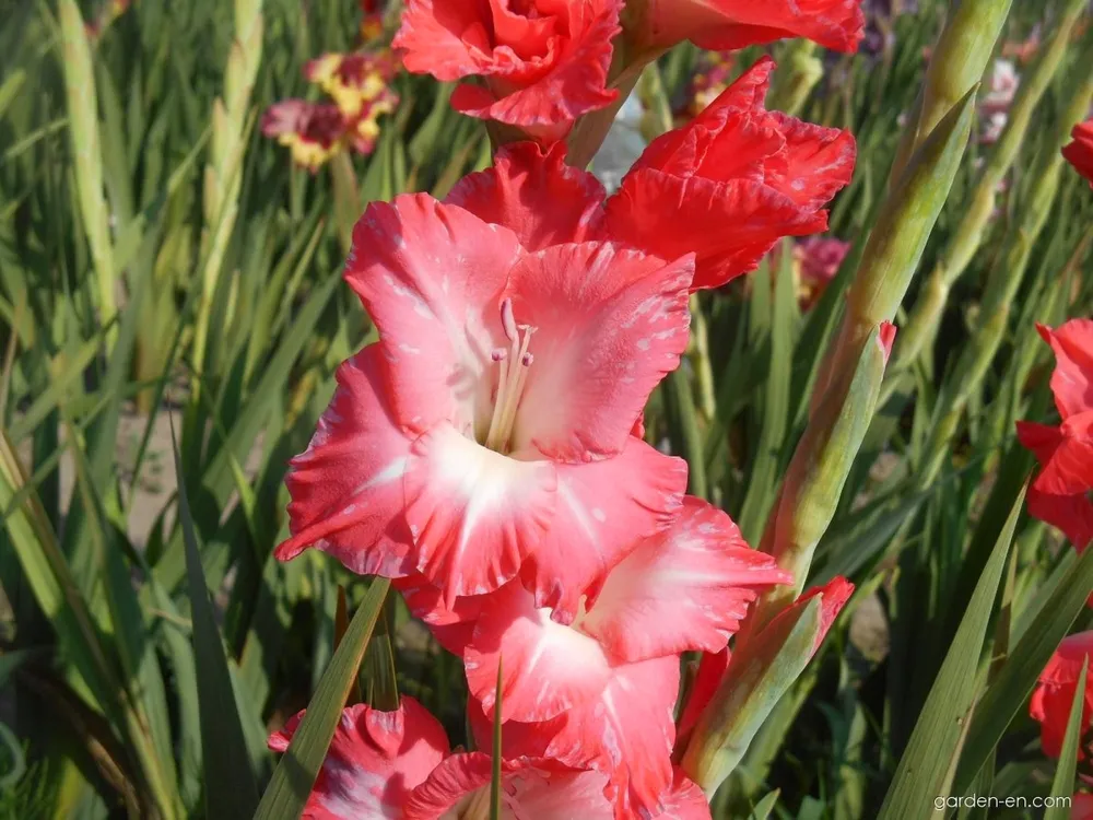 Гладиолус Сан Сиро – это один из самых популярных сортов гладиолусов, который покорил сердца цветоводов своим невероятным цветением. Этот сорт выделяется благодаря крупным, махровым цветкам насыщенного розово-красного цвета с белыми краями лепестков.