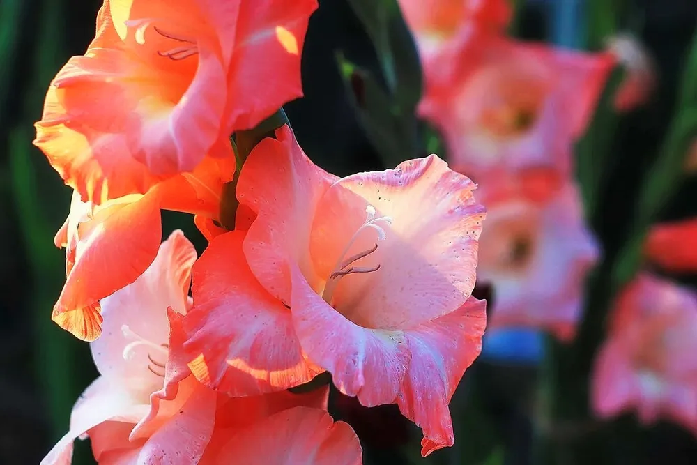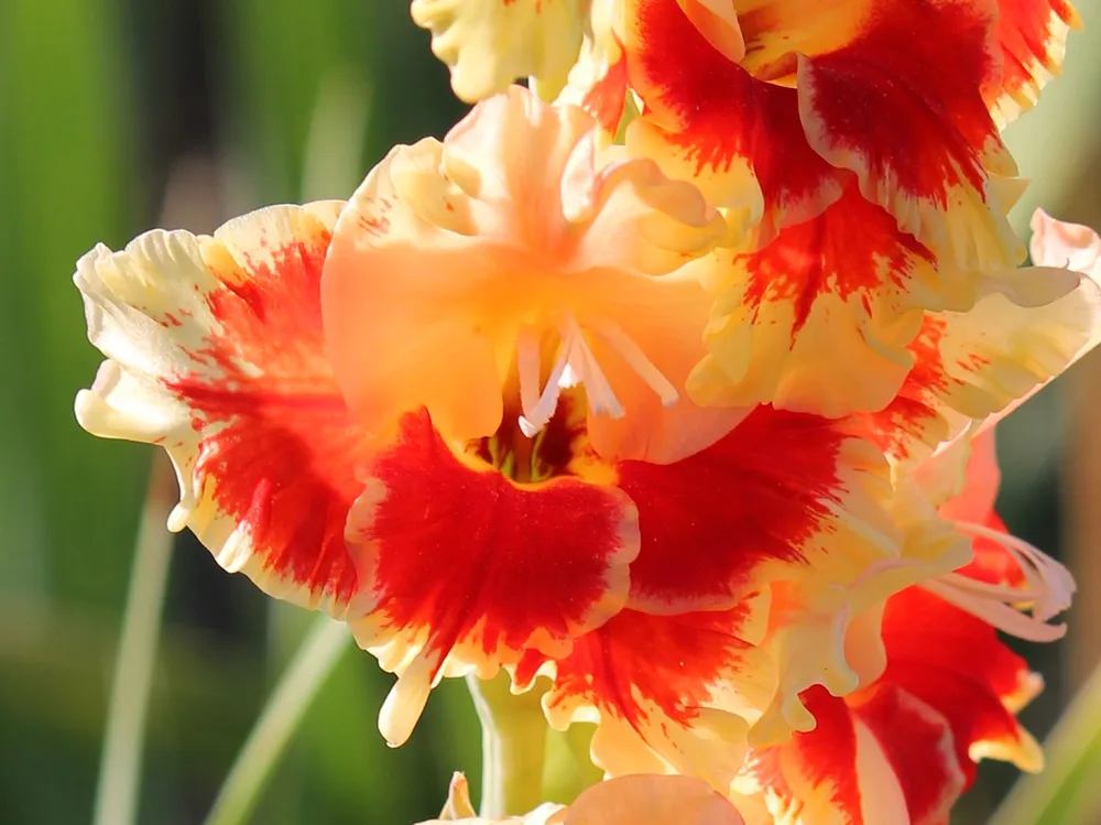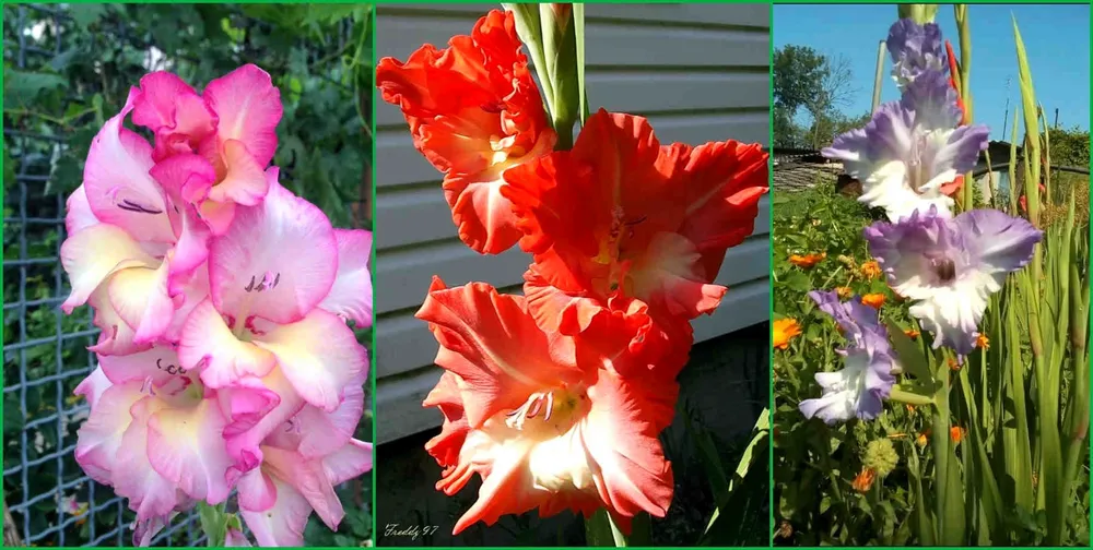 Гладиолус Стерео выделяется своим исключительным внешним видом. Его цветки, сгруппированные в крупные метельчатые соцветия, имеют необычную форму: лепестки слегка изогнуты, создавая эффект трехмерности и глубины. Цветовая гамма сорта поражает своей разнообразием: от нежно-розовых и кремовых до насыщенно-красных и бордовых тонов.