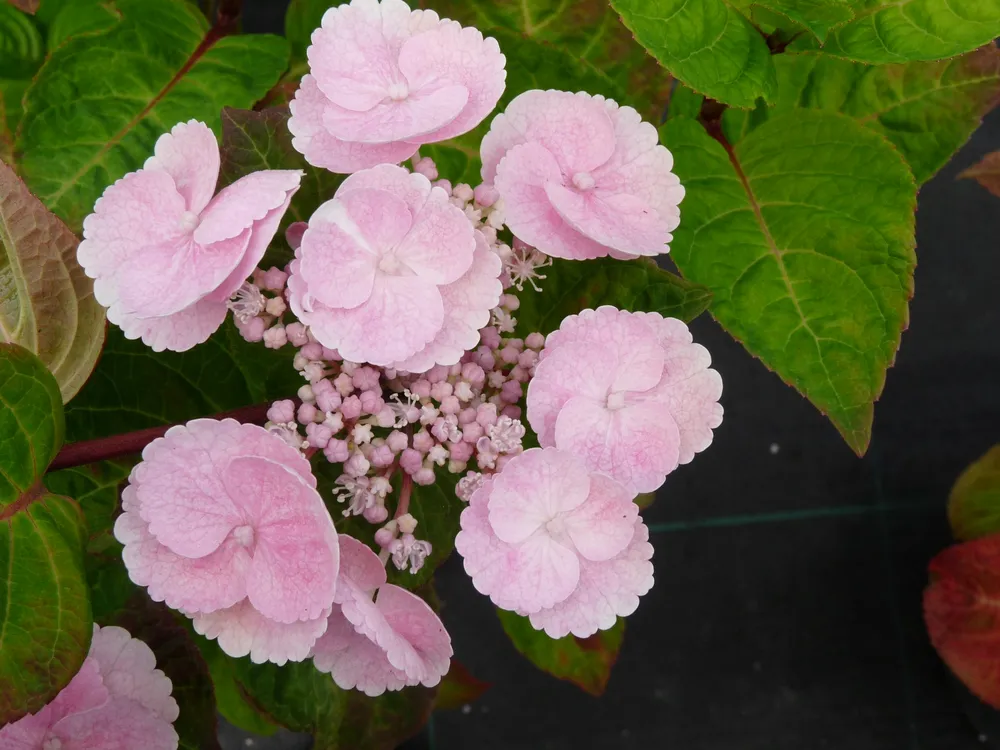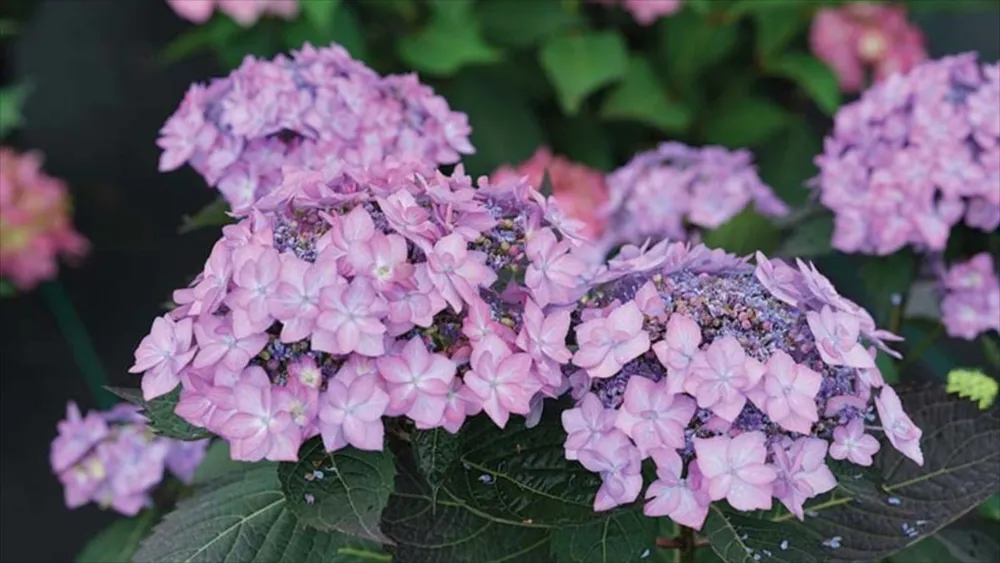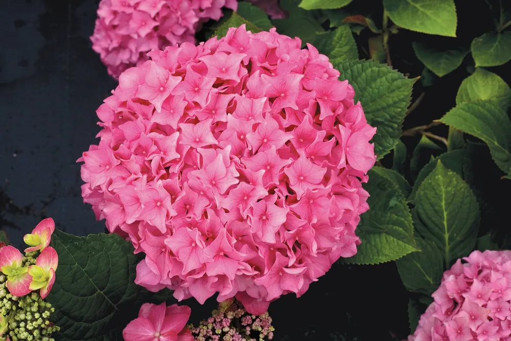 - Гортензия крупнолистная ‘Янгсберг’: отличается более компактным размером куста, а цветки имеют розовую окраску.