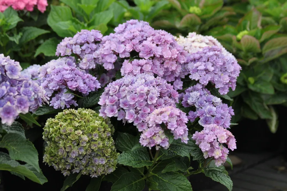 Гортензия Шоутайм отличается от других сортов своей необычной способностью менять окраску цветков в зависимости от кислотности почвы. Так, например, сорт ‘Endless Summer’ цветет белыми цветами независимо от pH почвы. Гортензия ‘Limelight’, напротив, имеет ярко-зеленые цветки, которые постепенно светлеют по мере их развития.