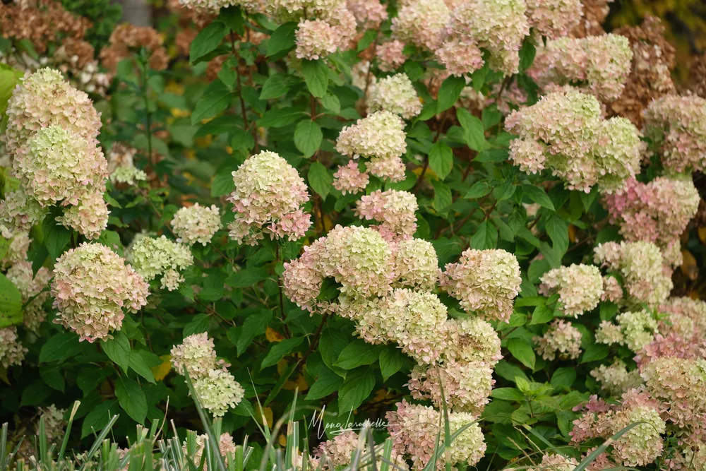 Гортензия метельчатая ‘Дарлидо’ (Darts Little Dot), также известная как ‘Дартс Литл Дот’, — это компактный и цветущий сорт, завоевавший сердца садоводов своими яркими, многочисленными соцветиями. Этот кустарник относится к группе метельчатых гортензий, которые славятся своей пышной красотой и продолжительным цветением. ‘Дарлидо’ выделяется своим удивительно миниатюрным размером, что делает его идеальным вариантом для контейнерного выращивания или небольших садов. Его шарообразные соцветия, собранные в метельчатые кисти, достигают около 15-20 см в диаметре и состоят из множества мелких цветков. Цветение начинается в середине лета и продолжается до первых заморозков, наполняя сад яркими красками розового цвета с легким фиолетовым отливом.