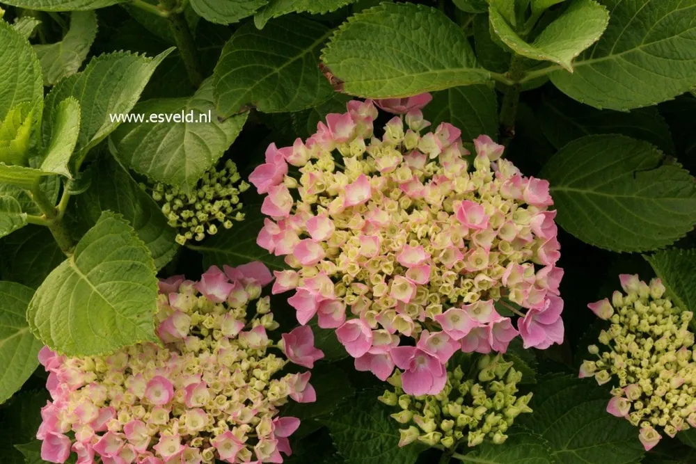Это растение – настоящее чудо селекции, выведенное в Нидерландах компанией ‘Florist’ в начале 21 века. Сорт получил широкое признание благодаря своей способности цвести очень долго: с начала июня и до поздней осени. Цветоносы, достигающие высоты 40-50 см, состоят из множества мелких цветков, собранных в плотные соцветия. Особенность сорта – способность менять окраску цветков в зависимости от уровня кислотности почвы: на нейтральной почве цветы ‘Эрли Сенсейшн’ будут розовыми, а при понижении pH до 5,5-6 они приобретут насыщенный синий цвет.