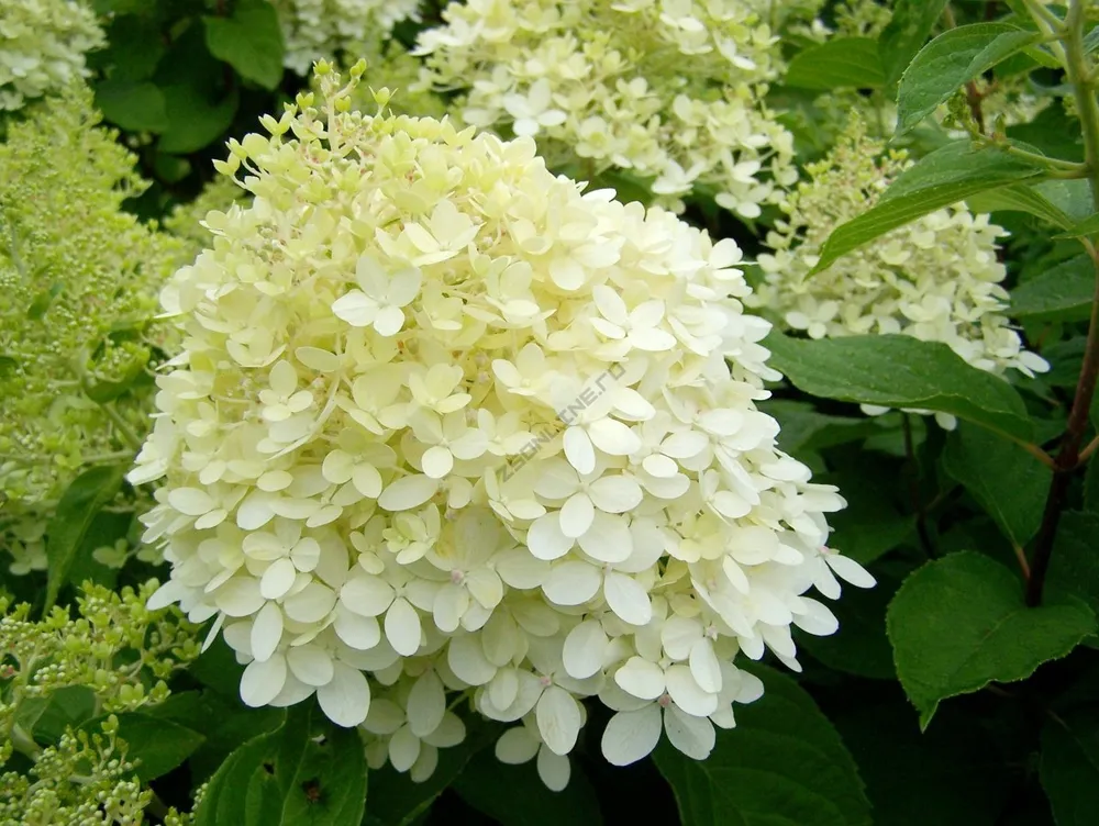 Гортензия метельчатая ‘Лаймлайт’ относится к группе метельчатых гортензий, которые славятся своими крупными и пышными соцветиями, напоминающими белые, розовые или пурпурные метёлки. ‘Лаймлайт’ отличается не только невероятно красивыми цветами, но и уникальным окрасом листьев – они имеют насыщенный лаймовый оттенок, который становится ещё ярче на солнце. Это делает сорт особенно привлекательным для тех, кто хочет добавить в свой сад оригинальный акцент. ‘Лаймлайт’ — это настоящий подарок для любителей необычных цветовых решений.