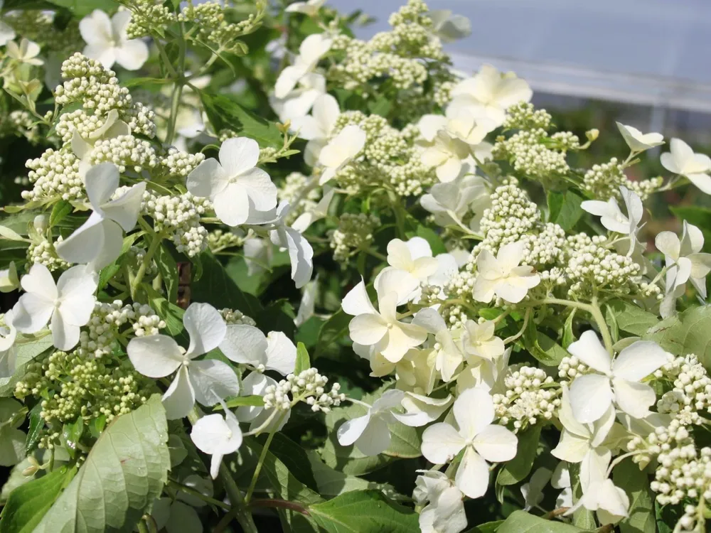 Гортензия метельчатая ‘Левана’, как и большинство представителей своего вида, предпочитает полутенистые участки с рассеянным солнцем.