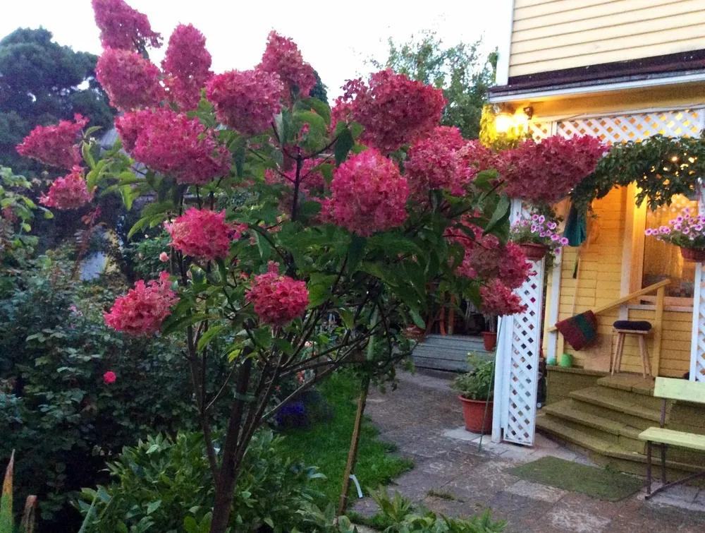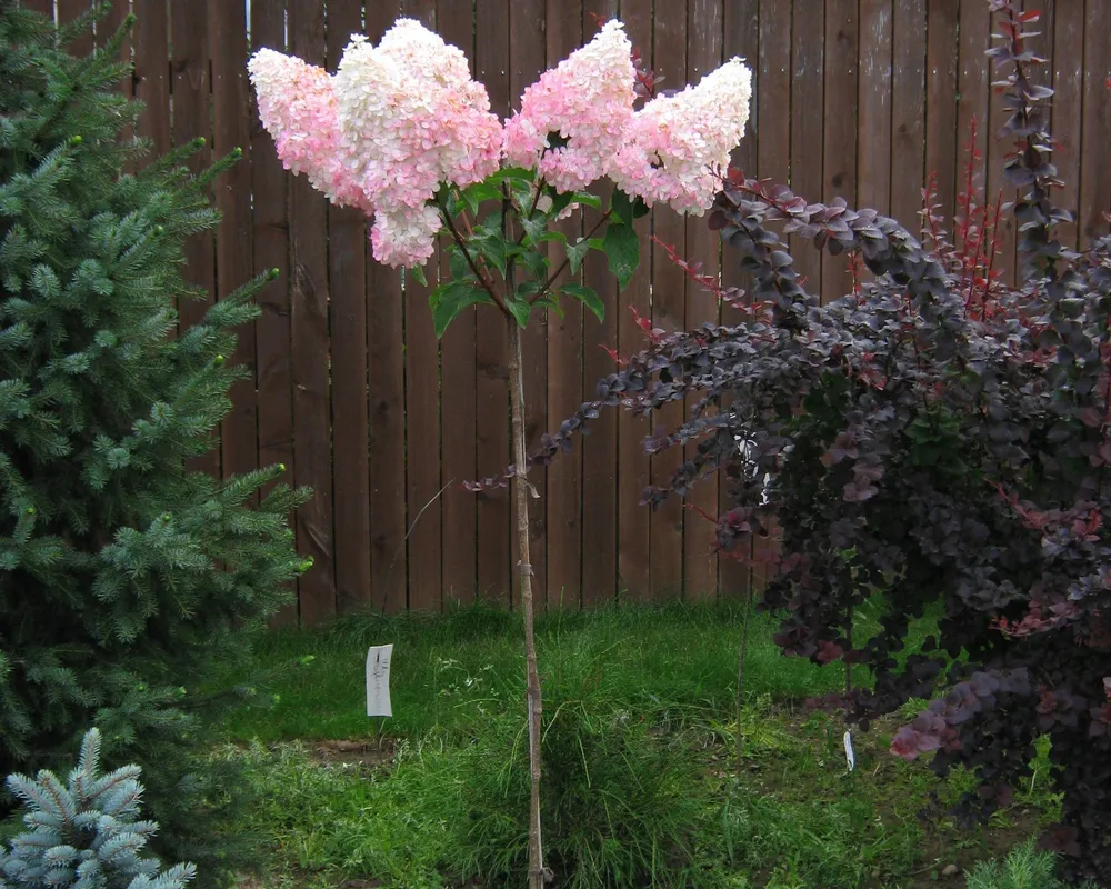 Гортензия метельчатая на штамбе отличается от своих собратьев- кустарников не только формой роста, но и более компактными размерами. Это делает ее идеальным вариантом для небольших садов или контейнерных посадок.