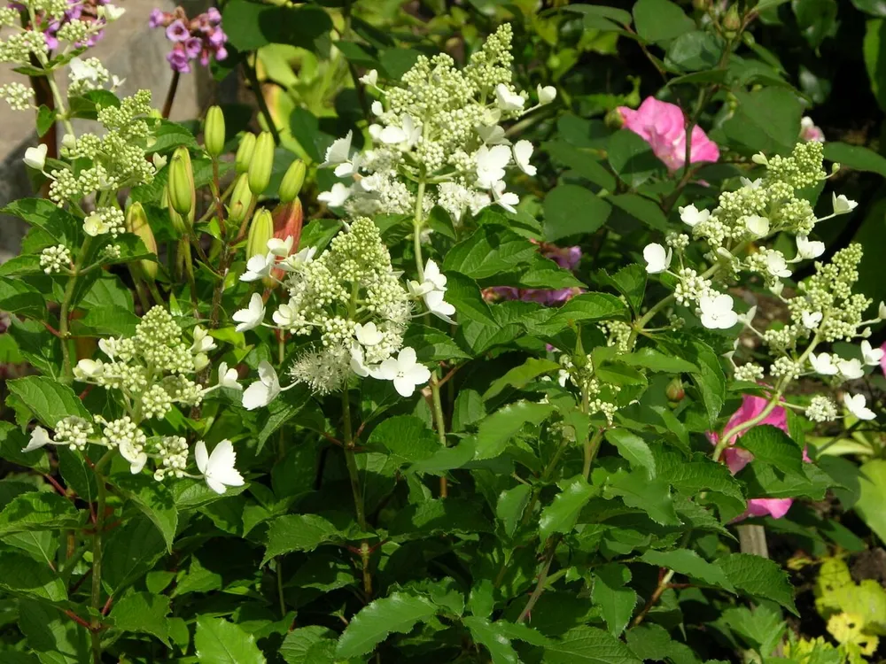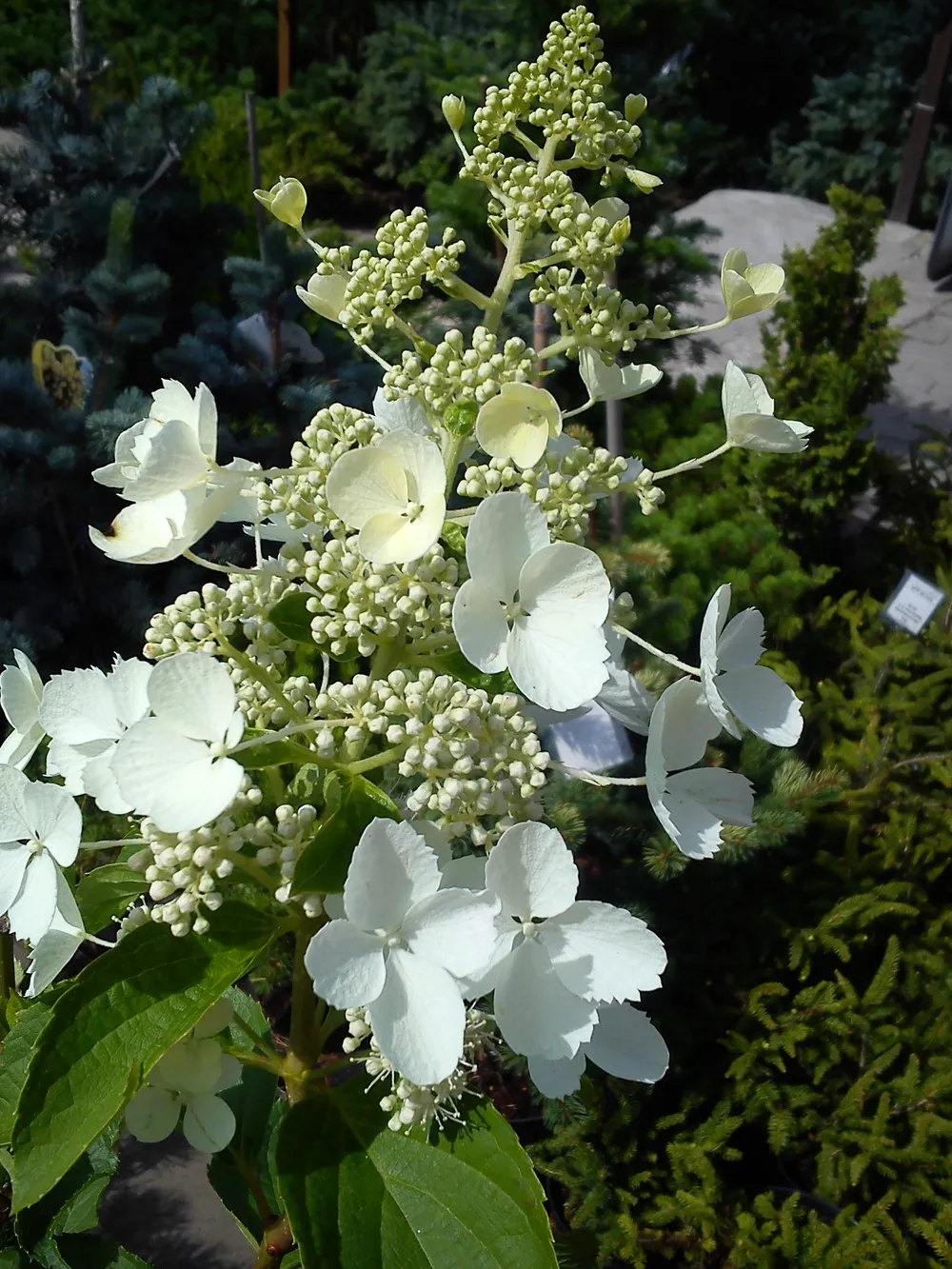 Гортензия метельчатая ‘Уайт Леди’ – это замечательный сорт, который покорил сердца садоводов своей безупречной белизной и пышностью цветения. Она является гибридом, выведенным в Нидерландах, и заслужила любовь благодаря непревзойденному сочетанию декоративности и неприхотливости. В отличие от многих других сортов гортензии метельчатой, ‘Уайт Леди’ не нуждается в особой деликатности и прекрасно чувствует себя даже в условиях средней полосы России. Ее белые соцветия, напоминающие мягкие облака, наполняют сад воздушностью и романтикой. Непревзойденный вид куста сохраняется на протяжении всего летнего сезона благодаря обильному цветению и устойчивости к болезням. Особенности роста и развития Гортензия метельчатая ‘Уайт Леди’ – это мощное растение, которое может достигать в высоту 150-180 сантиметров и иметь такой же диаметр кроны. Благодаря своей густой листве и пышным соцветиям куст имеет очень привлекательный внешний вид на протяжении всего сезона. Условия выращивания ‘Уайт Леди’ #Освещение Для того, чтобы гортензия метельчатая ‘Уайт Леди’ раскинулась в своем полном величии, ей необходимо хорошее освещение. Однако прямые солнечные лучи в течение всего дня могут повредить листья растения. Лучший вариант – это полутень: 4-6 часов прямого солнца в день и остальное время рассеянного света. #Почва ‘Уайт Леди’, как и большинство представителей рода гортензия, предпочитает плодородную, рыхлую и хорошо дренированную почву. * pH: оптимальный уровень pH для роста гортензии метельчатой – это слабокислая или нейтральная почва (6,0-7,0). * **Дренаж:** очень важен! Гортензия не переносит заболачивания корней. Почву необходимо разрыхлить и добавить песок, торф или гравий для улучшения дренажа. * **Питательные вещества:** Лучший вариант – это смешать плодородную землю с компостом или перепревшими органическими удобрениями. #Полив Гортензии метельчатой ‘Уайт Леди’ необходимо регулярное и обильное полив, особенно в период активного роста и цветения. * **Частота:** Полив должен быть регулярным, примерно каждый день, особенно в жаркую погоду. * **Объем воды:** Полив следует проводить таким образом, чтобы вода хорошо пропитала весь земляной ком. * **Ошибки при поливе:** Переувлажнение почвы – главная причина гибели гортензий. Нельзя допускать застоя влаги у корней. #Подкормка Гортензии метельчатой ‘Уайт Леди’ нуждаются в регулярной подкормке для обильного цветения и здорового роста. * **Какие удобрения использовать:** Лучше всего использовать комплексные минеральные удобрения с высоким содержанием калия и фосфора. * **Как часто подкармливать:** Подкармливать гортензию ‘Уайт Леди’ рекомендуется каждые 2-3 недели в период активного роста (с весны до середины лета) и раз в месяц во время цветения. * **Когда начинать и заканчивать подкормку:** Начало подкормок – с началом вегетации, когда куст начнет активно расти. Подкормки прекращают осенью, за 4-6 недель до наступления первых заморозков. Формирование кроны ‘Уайт Леди’, как правило, растет в форме компактного шара. Но для более аккуратного вида и лучшего цветения рекомендуется проводить формирование кроны: * **Обрезка:** Формирующая обрезка проводится весной до начала роста новых побегов. При этом удаляют слабые, поврежденные и пересекающиеся ветви. * **Подрезание цветущих побегов:** После цветен