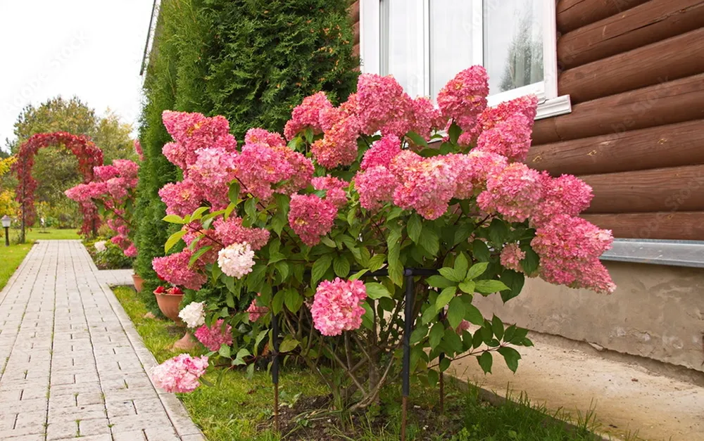 Гортензия ‘Ванилла Фрейз’ — это настоящее украшение любого сада. Ее крупные, воздушные соцветия окрашены в нежно-кремовый оттенок с легким розовым подтоном, напоминающим ароматную ваниль. Цветки раскрываются постепенно, начиная с белого и плавно переходя в кремово-розовый. Этот сорт относится к группе метельчатых гортензий, которые отличаются крупными соцветиями в форме пирамид или кустов, состоящих из множества мелких цветков.