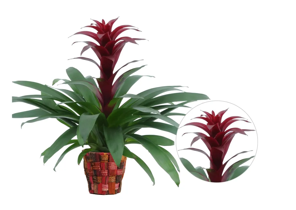 Гузмания, или гусмания (Guzmania), относится к семейству бромелиевых и славится своими красочными соцветиями, напоминающими цветы-влагалища. Это тропическое растение, которое в естественной среде обитает в лесах Центральной и Южной Америки.