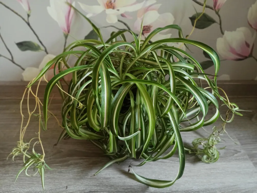 Среди сортов хлорофитума выделяют: ‘Bonnie’ — более компактный, с густыми листьями; ‘Variegatum’ — с пестрыми листьями; ‘Comosum’ — классический вид с длинными побегами и воздушными детками.