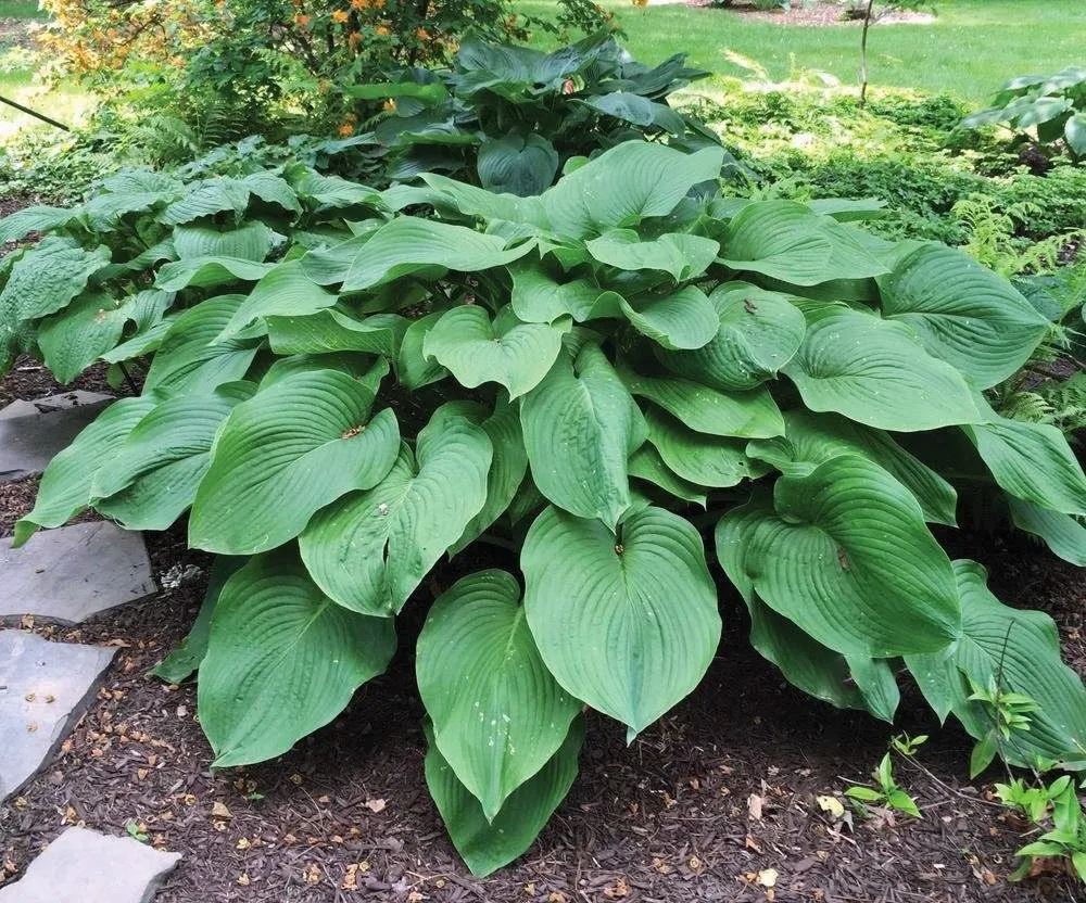 Jurasic Park выделяется среди других сортов хосты своим необычным окрасом листьев. Золотистые пятна на фоне темно-зеленого фона создают уникальный визуальный эффект. Другие популярные сорта, такие как ‘Francee’ или ‘Blue Angel’, отличаются более однотонными окрасами листьев.