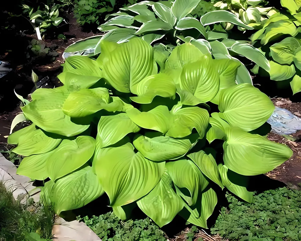 Хоста Энчиладос – это сорт, который покорил сердца многих цветоводов своим неповторимым внешним видом и неприхотливостью в уходе. Сорт выделяется своими крупными, широкоовальными листьями с необыкновенной текстурой и окрасом. Листва Хосты Энчиладос характеризуется мазками желтого цвета, которые словно растут на фоне темно-зеленого фона, создавая причудливый узор, напоминающий пестрые ткани или напоминает рисунок древних ковров. В сочетании с компактным кустом высотой до 40 сантиметров это растение станет настоящим украшением любого сада.