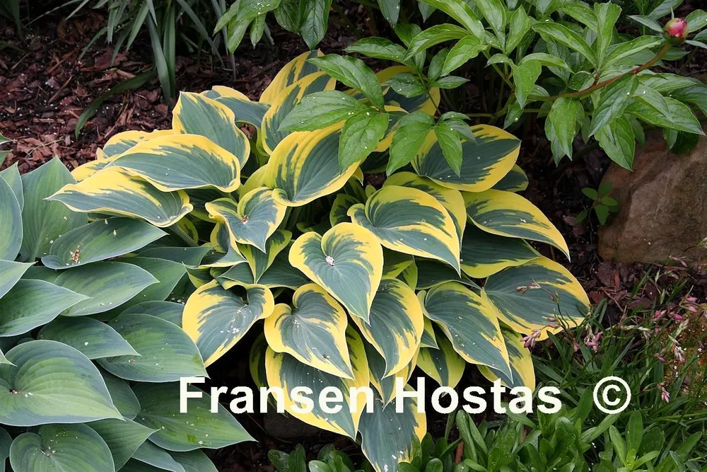 ‘First Frost’ отличается от других хост более яркими, контрастными окрасками листьев и более крупными размерами куста.
