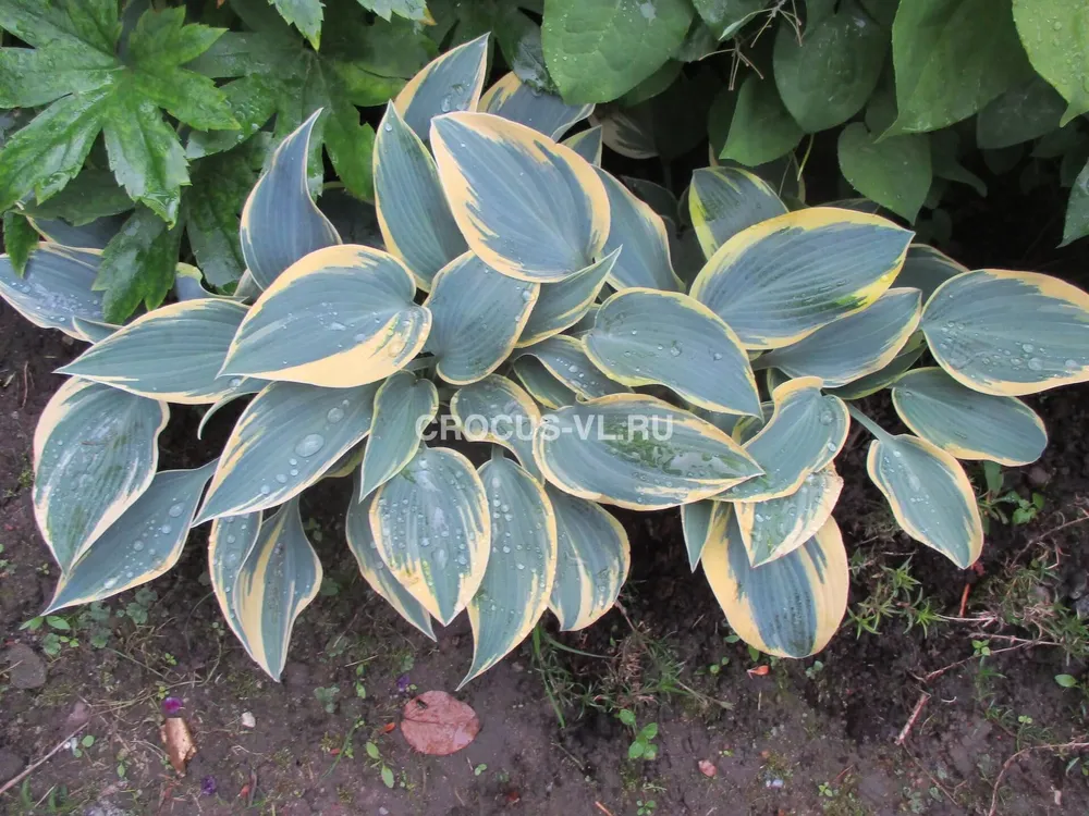 Хоста ‘First Frost’ любит влажный грунт, но не переносит застоя воды.