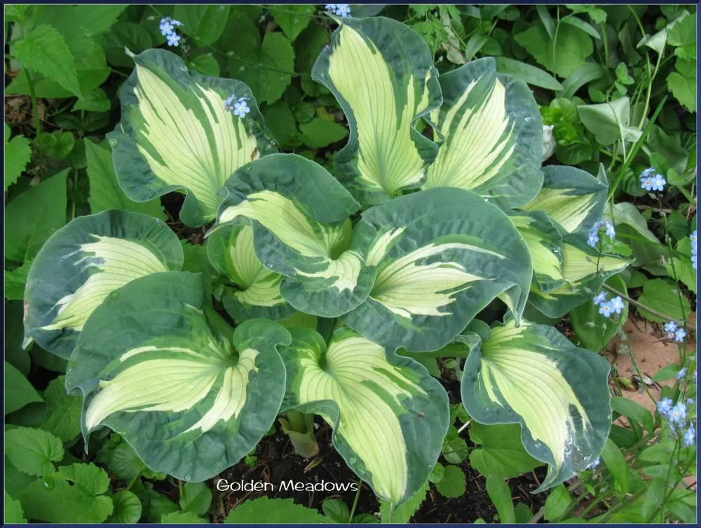 Хоста Голден Мэдоус растет довольно быстро и может достигать в диаметре до 70-80 см. Листья растения достаточно крупные и могут быть собраны в розетки по 5-10 штук.