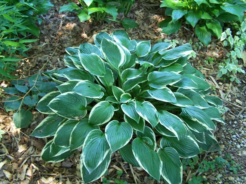 Хоста Лейксайд Маверик выделяется среди других сортов своим необычным рисунком листьев. Например, сорт ‘Francee’ имеет более светлую окраску с широкими бело-кремовыми каймами, а ‘Blue Angel’ отличается сине-зелеными листьями с серебристым отливом.