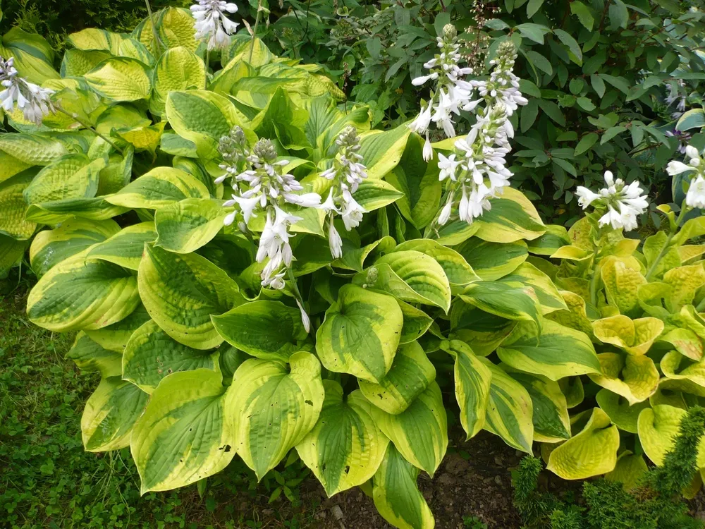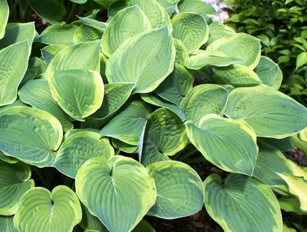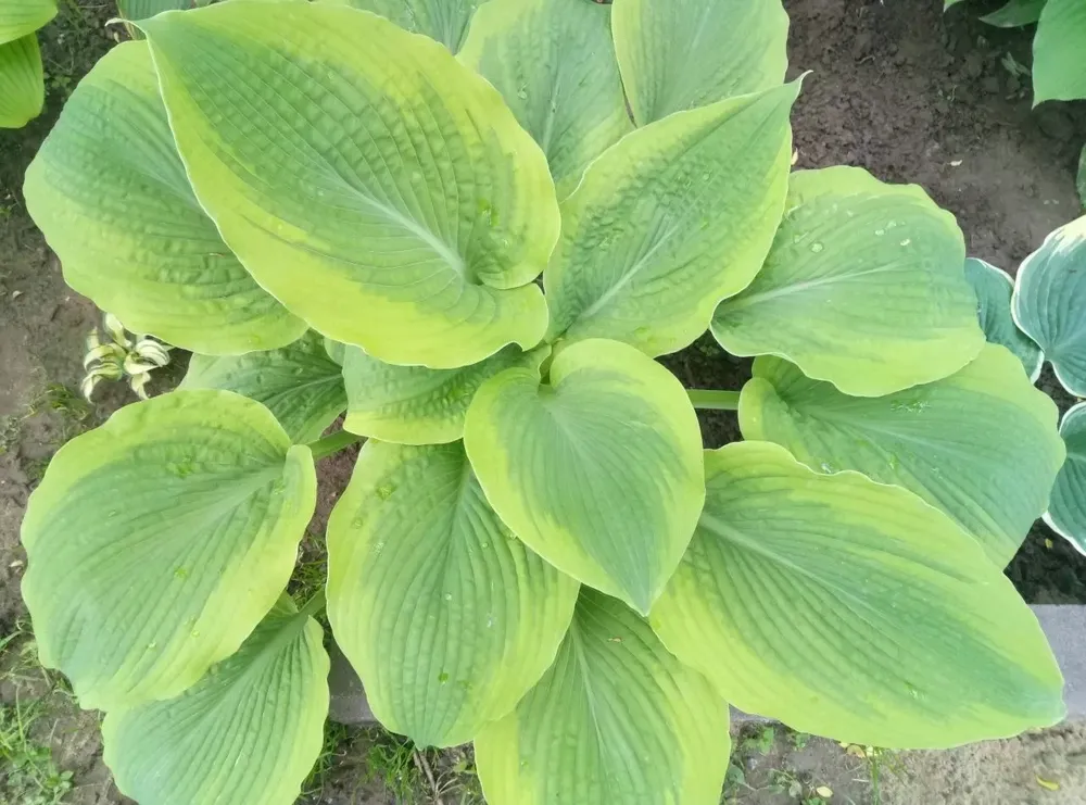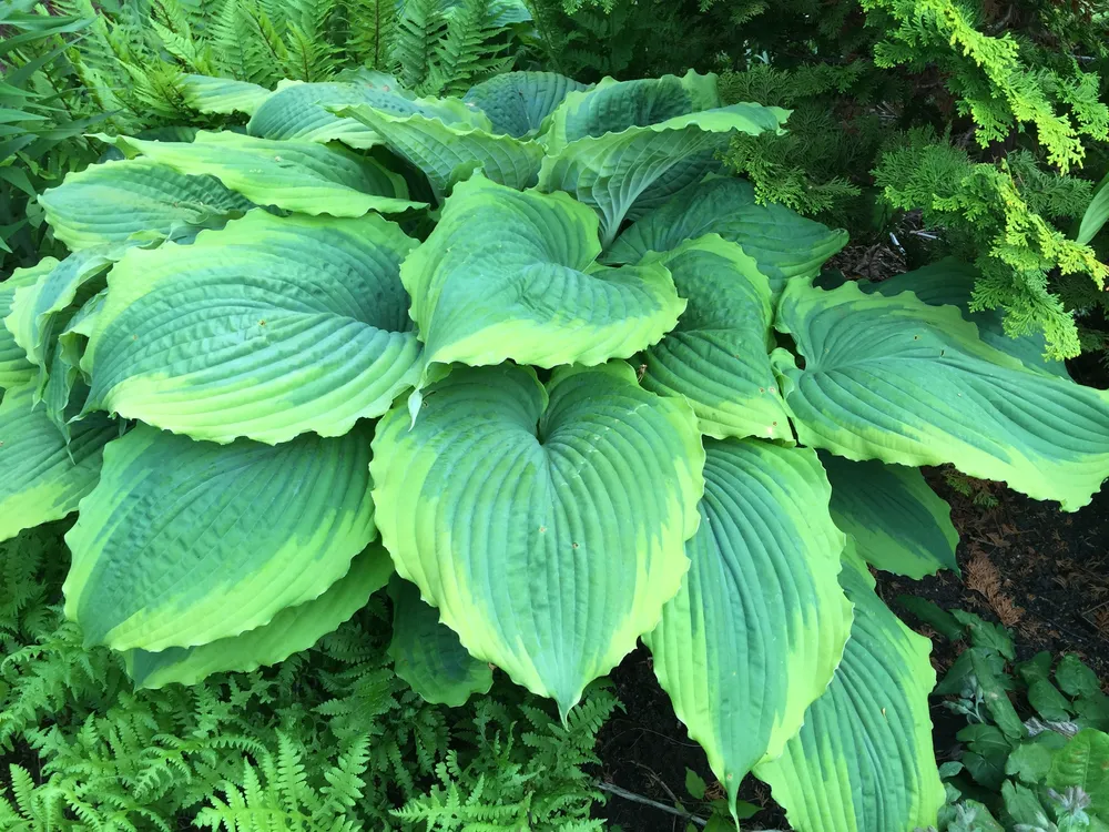 Сорт ‘Blue Angel’ обладает красивой сизым цветом листьев, а ‘Sum and Substance’ имеет крупные желтые листья.