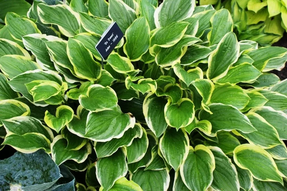 Хоста Соу Свит (Hosta ‘Souvenir’) – это декоративный сорт хосты, получивший широкое признание среди цветоводов за свою привлекательность и неприхотливость в уходе. Растение выделяется своими крупными, темно-зелеными листьями с кремовой каймой и удивительными светло-розовыми цветками, появляющимися в середине лета.