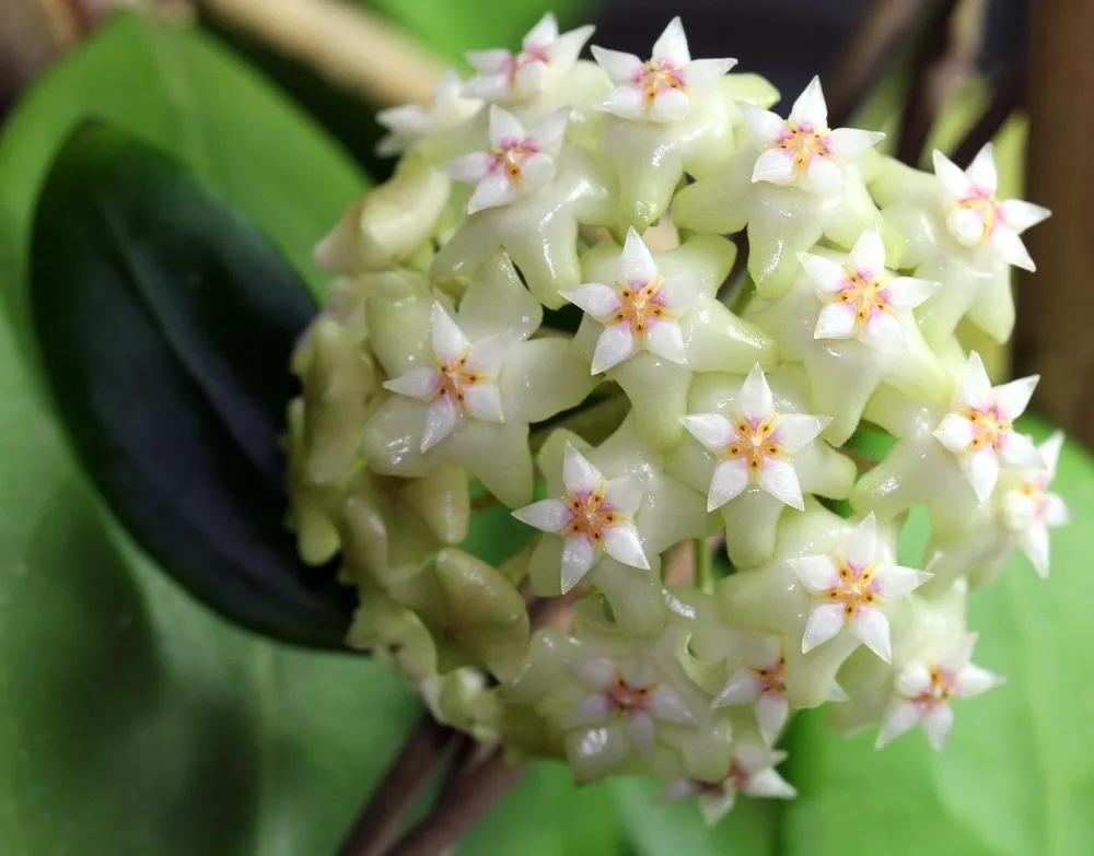 Хойя, или восковой плющ (Hoya), относится к семейству ласта Quelles является вечнозелёным лиановидным растением, которое покорило сердца любителей комнатных цветов своими изящными лепестками и необыкновенной ароматом. Этот род насчитывает около 200 видов, а культивируется в основном за своим декоративным видом, который отличается от других видов растений своей особенностью – восковым налетом на листьях и цветочных соцветиях.