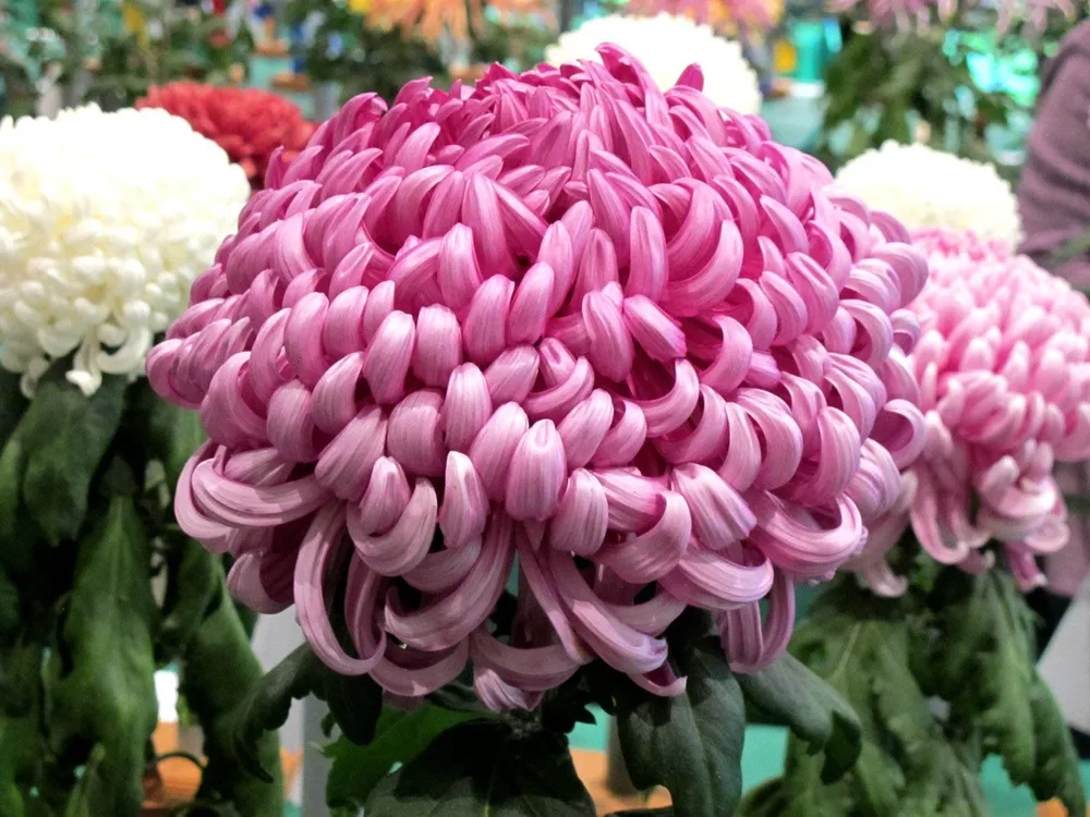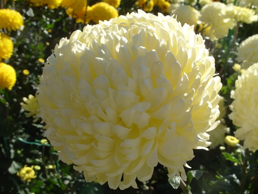 Хризантема крупноцветковая отличается от других видов хризантем, прежде всего своими крупными цветками (диаметром до 20 см), которые могут быть как махровыми, так и простыми. Она также более морозостойкая и может переносить зимние холода в умеренных климатических условиях без укрытия.