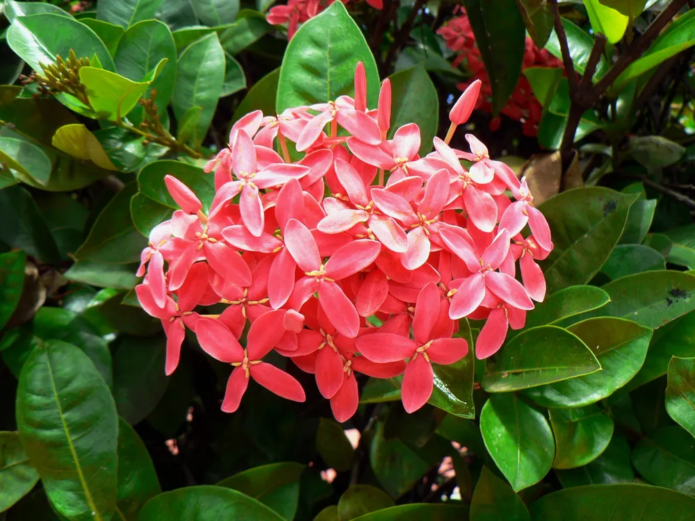 Иксора относится к группе красивоцветущих растений, среди которых есть множество других сортов с привлекательными цветами и формой роста. Например, гибискус отличается более крупными цветками и широким спектром окрасок, а герань – неприхотливостью и обильным цветением.