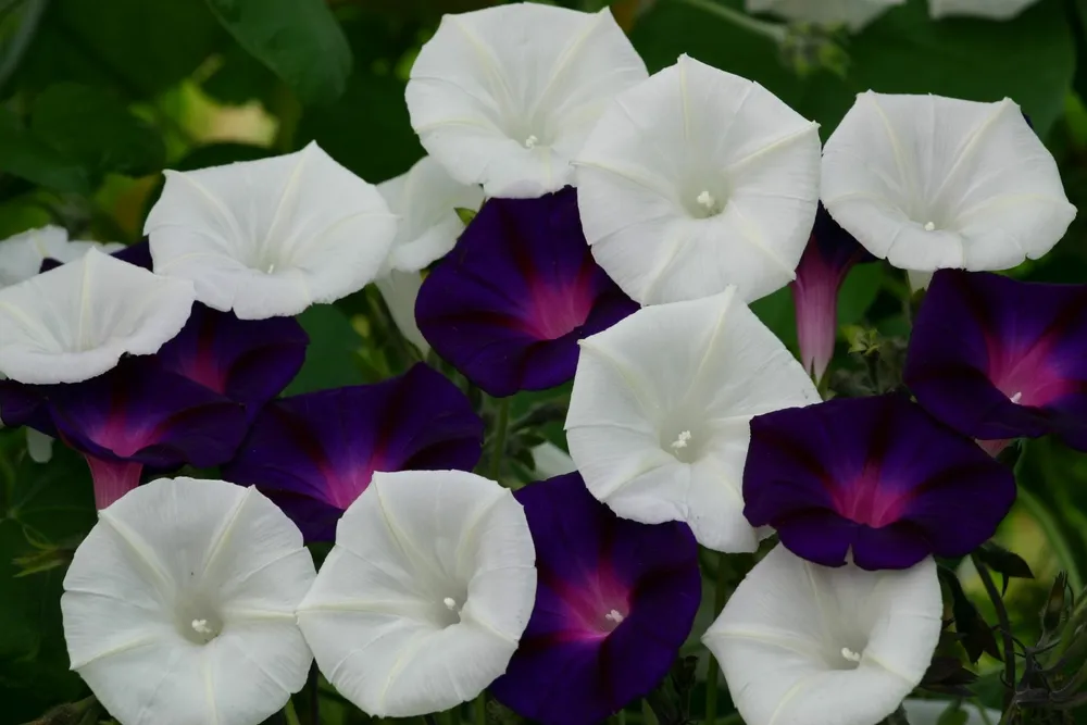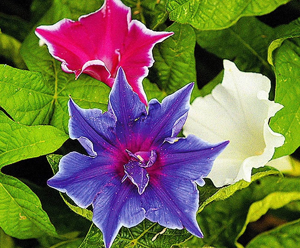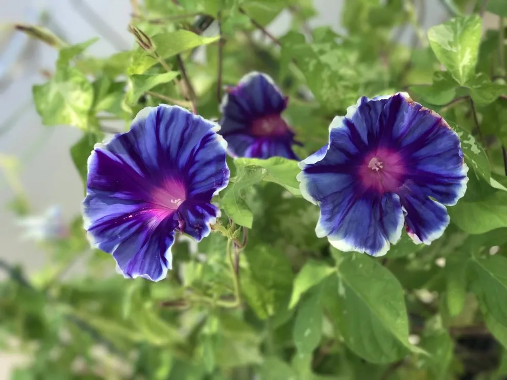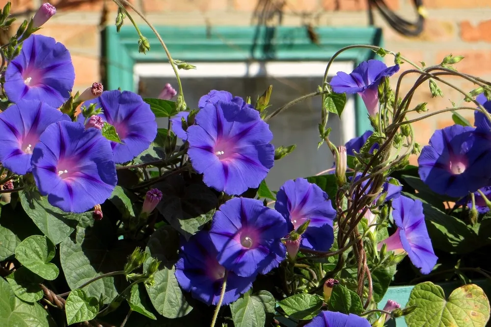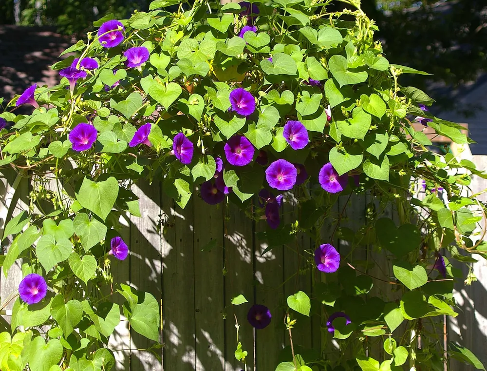 - Ипомея пурпурная: цветет позже, в июле-августе, цветки мельче.
