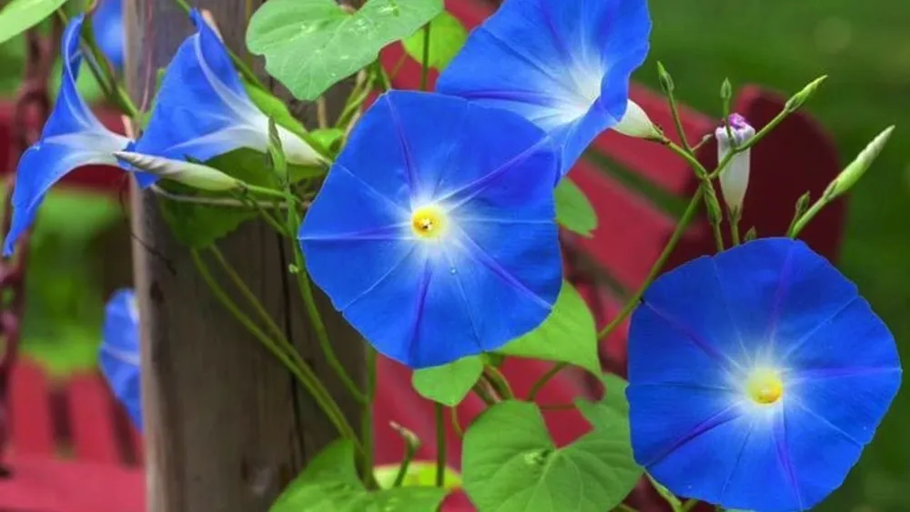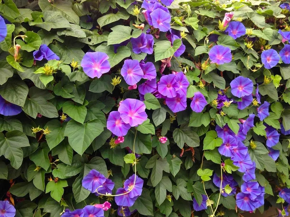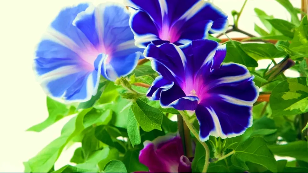 Ипомея «Танц теней» выделяется среди других сортов своими необычайно яркими цветами с переходом от пурпурного к голубому.
