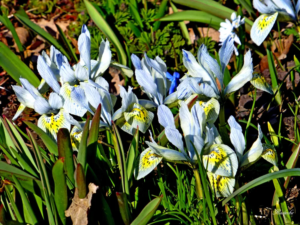 Иридодиктиум отличается от других сортов ирисов своей необычной формой листьев и более компактным размером куста. В то время как многие виды ирисов имеют крупные, махровые цветы, Иридодиктиум выделяется своими изящными, простыми цветками.