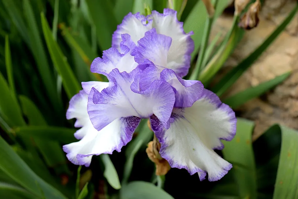Внешний вид этого сорта поистине великолепен: крупные цветки насыщенного пурпурного цвета с белой каймой по краю лепестков. В каждом соцветии до 3 цветков, что делает его особенно эффектным. Высота куста достигает 70-80 см, а диаметр цветка – около 12 см. Цветение Ириса Аида начинается в начале лета и продолжается до середины августа.