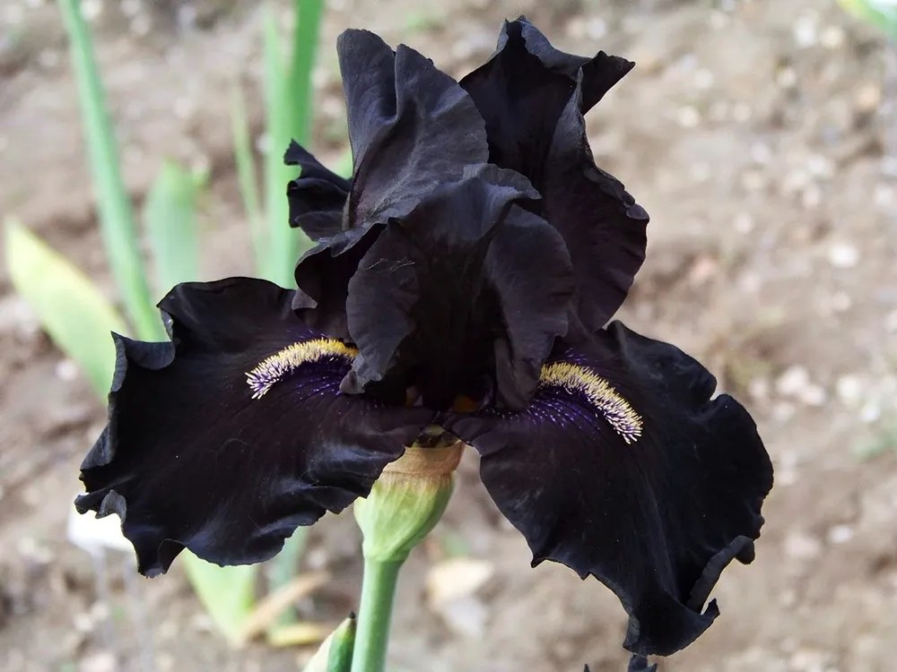 Ирис Блэк Джокер выделяется своей необычной окраской среди других сортов ирисов. Его глубокий черный цвет лепестков контрастирует с ярко-желтым центром цветка, создавая очень эффектный вид.