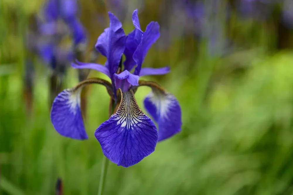 Ирис Блю Кинг отличается от многих других сортов своей насыщенной голубым цветом.