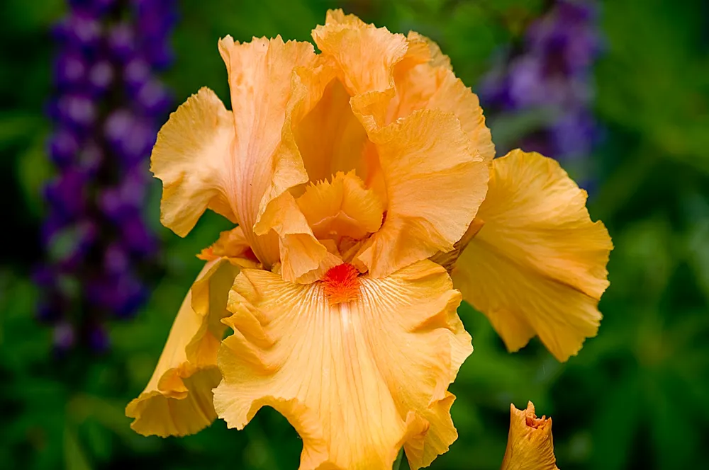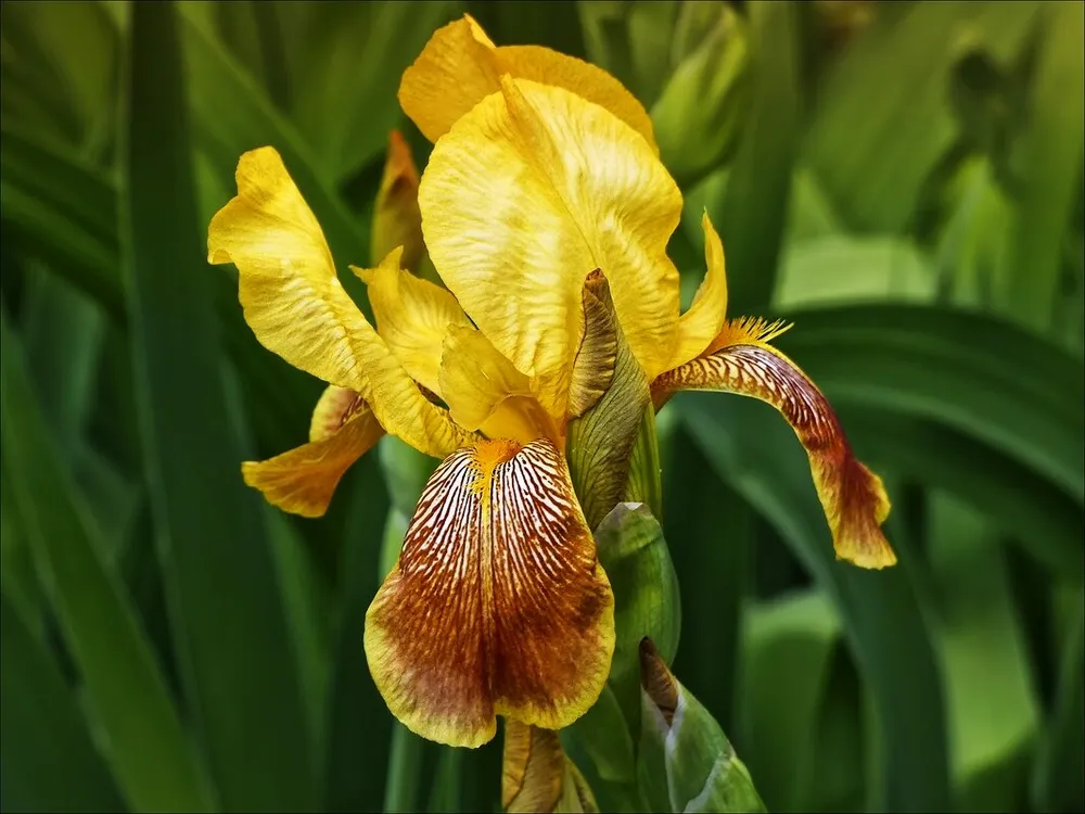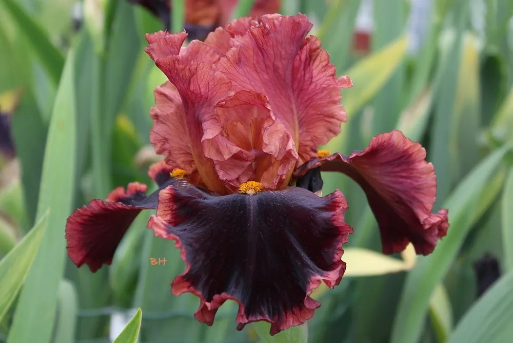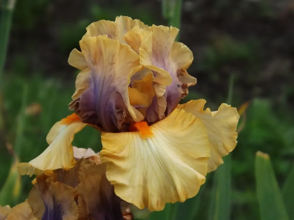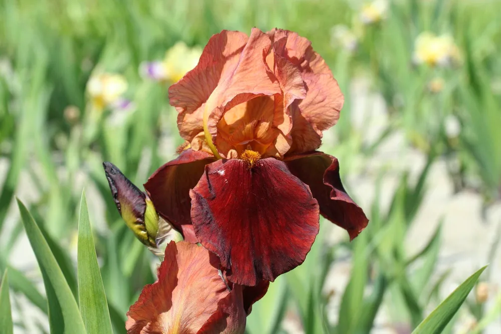 Ирис Бронз Бьюти – это многолетний вид ириса, который покорил сердца садоводов своей необычной расцветкой и неприхотливостью в выращивании. Он представляет собой гибрид двух видов: Iris germanica ‘Bronze Beauty’ и Iris sibirica ‘Sibirica’. Этот сорт отличается ярким бронзовым оттенком лепестков, который придает ему особую элегантность. Период цветения начинается в конце мая и длится около трех недель. Цветки Ириса Бронз Бьюти крупно-махровые, с четкими, рельефными прожилками, достигая в диаметре до 12 см. Цветовая гамма лепестков варьируется от глубокого бронзового до золотистого, с легким переливом и эффектным контрастом между внутренним и внешним краем цветка.