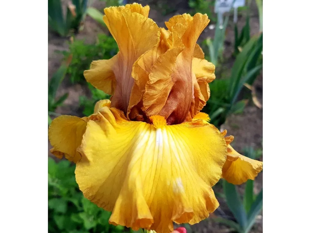 Ирис Гармония отличается от других сортов бородатых ирисов своей яркой окраской.