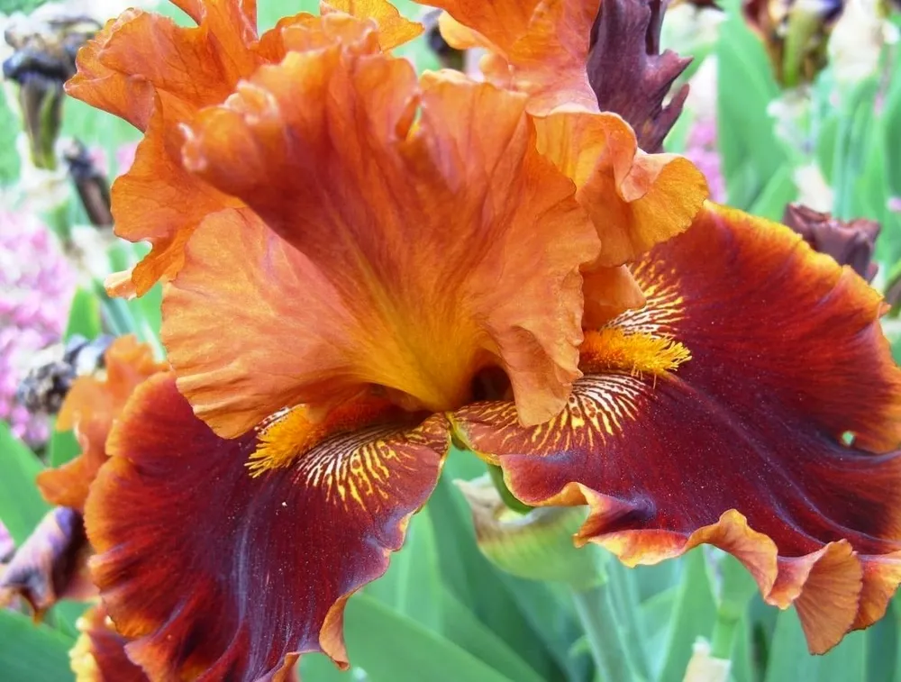 Ирис Ред выделяется среди других сортов своей яркой окраской и неприхотливостью. Его цветовая гамма отличается насыщенным красным цветом, в то время как другие сорта могут иметь более светлые или пастельные оттенки.