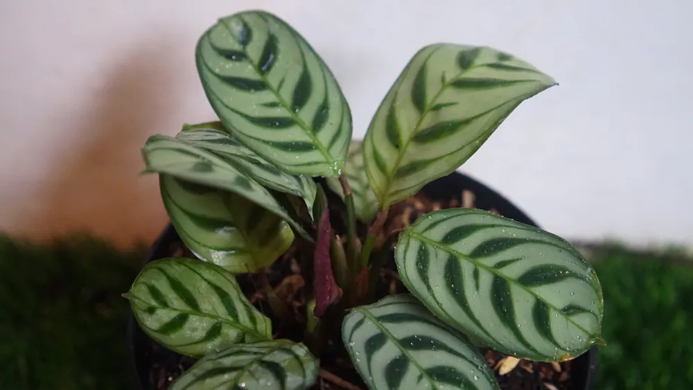 Поливать калатею нужно обильно, но не чаще одного раза в неделю. При поливе убедитесь, что вода стекает из дренажных отверстий горшка. В период активного роста (весна-лето) полив можно проводить чаще, а зимой сократить его до 1 раза в две недели.