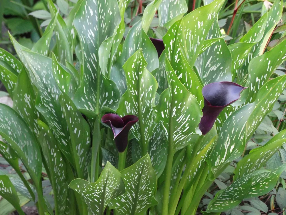 Калла Блэк Стар отличается от других сортов темными цветками, которые выделяются на фоне зелени листьев. Другие сорта калл могут иметь более светлую окраску, а также различную форму цветков. Например, Калла ‘Miss Molly’ имеет яркие розовые цветы, а Калла ‘Black Magic’ обладает более глубоким фиолетовым оттенком цветка.