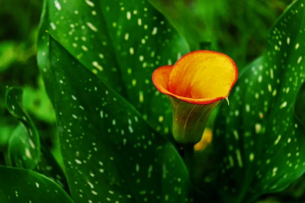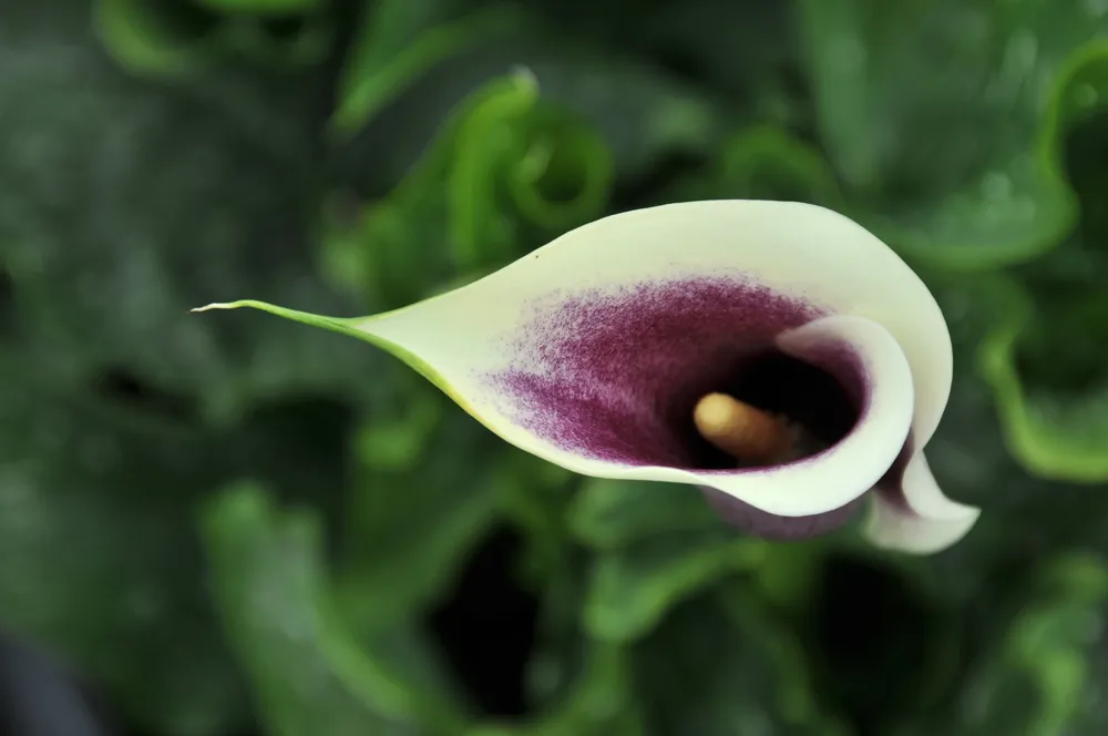 Калла Кристал Блаш отличается от других сортов своей необычной окраской листьев.