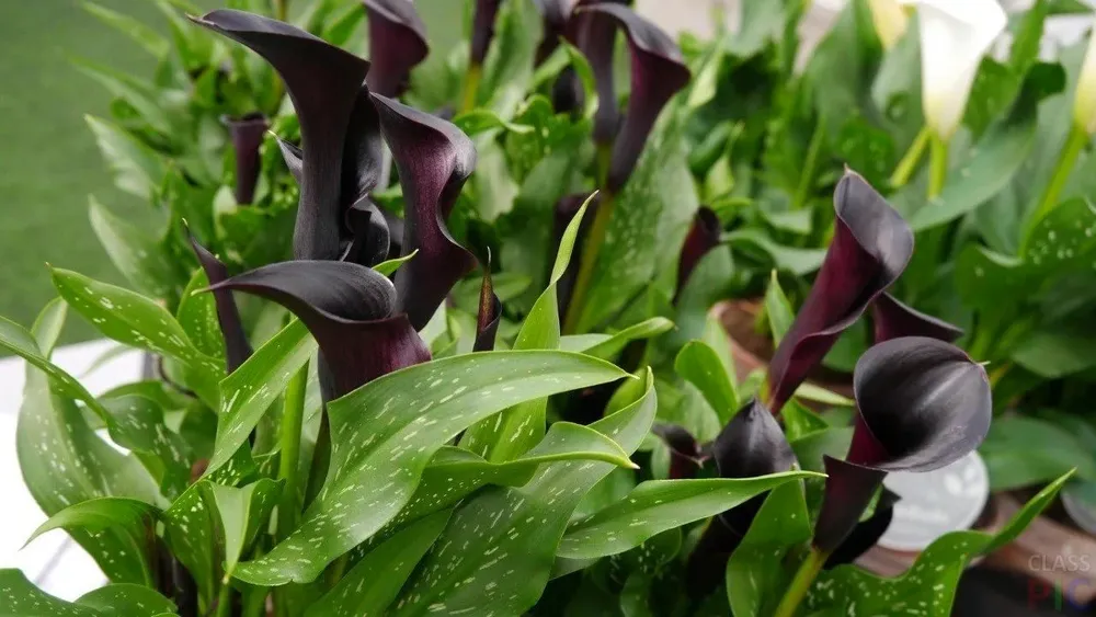 Существует множество сортов калл с различными цветами, размерами и формой листьев. Например, ‘Black Magic’ отличается темно-красными цветками, а ‘White Queen’ — белыми.