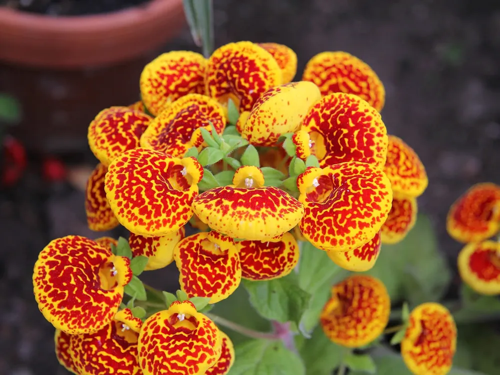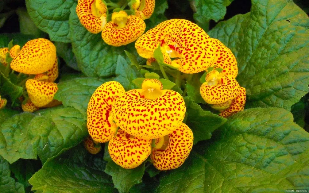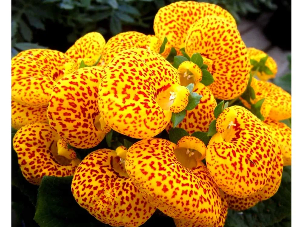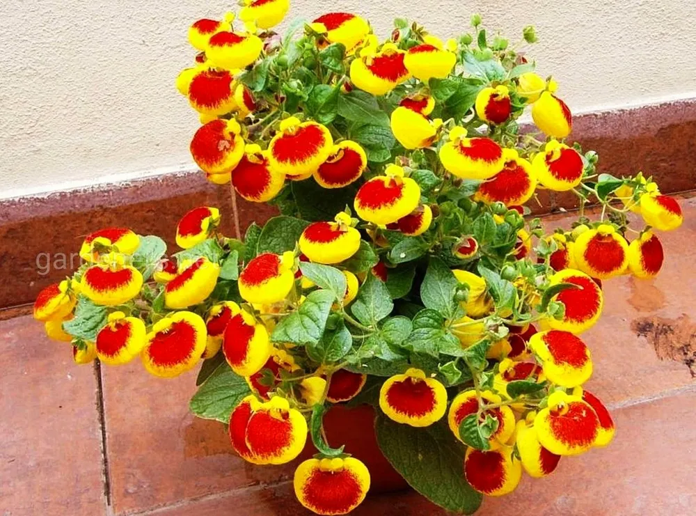 В семействе кальцеолярий существует множество сортов, отличающихся по форме, размеру, окраске цветов и высоте куста. * Кальцеолярия золотистая отличается ярко-желтыми цветками, а кальцеолярия ‘Скарлет’ – насыщенно-красными. * Кальцеолярия ‘Вечерний колокол’ привлекает своей необычной формой цветков, напоминающих малые колокольчики.