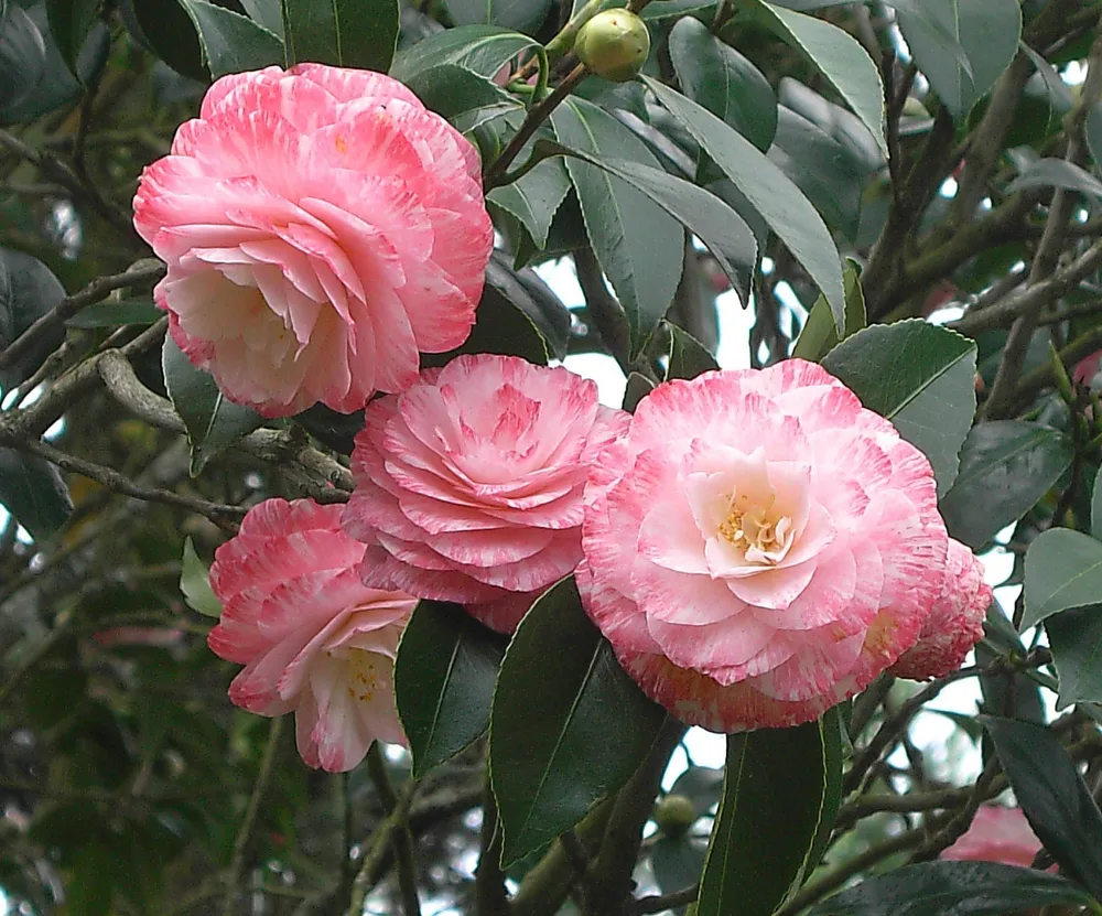 Камелия японская ‘Бономиана’ – это прекрасный выбор для тех, кто хочет насладиться красотой цветущих камелий без особых хлопот. Она неприхотлива в уходе, прекрасно цветет и украсит любой сад.