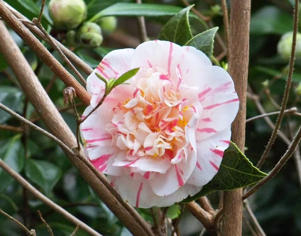 Камелия японская Джордано Санторелли – это восхитительный сорт, который покоряет своим великолепием и неприхотливостью. Выведенный в начале 20 века, он быстро стал одним из самых популярных сортов камелии благодаря своей необычной окраске цветков и долгому периоду цветения.