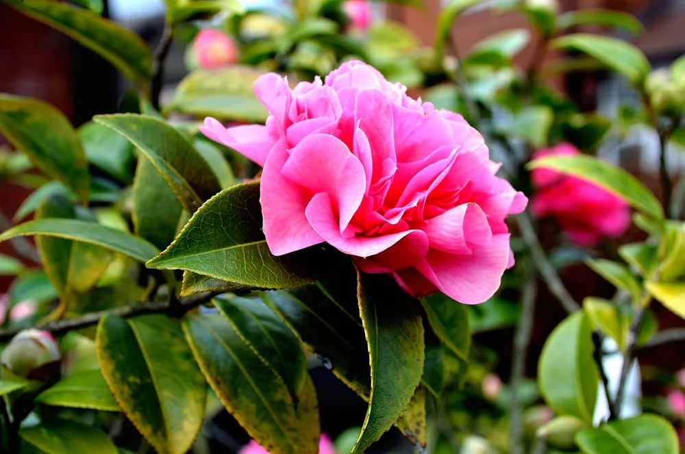 - Камелия японская Джордано Санторелли может страдать от хлороза, который проявляется в пожелтении листьев. Это может быть связано с недостатком железа в почве.