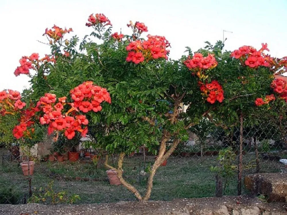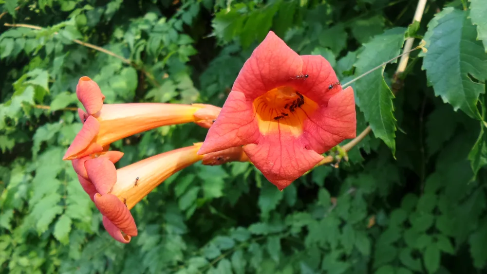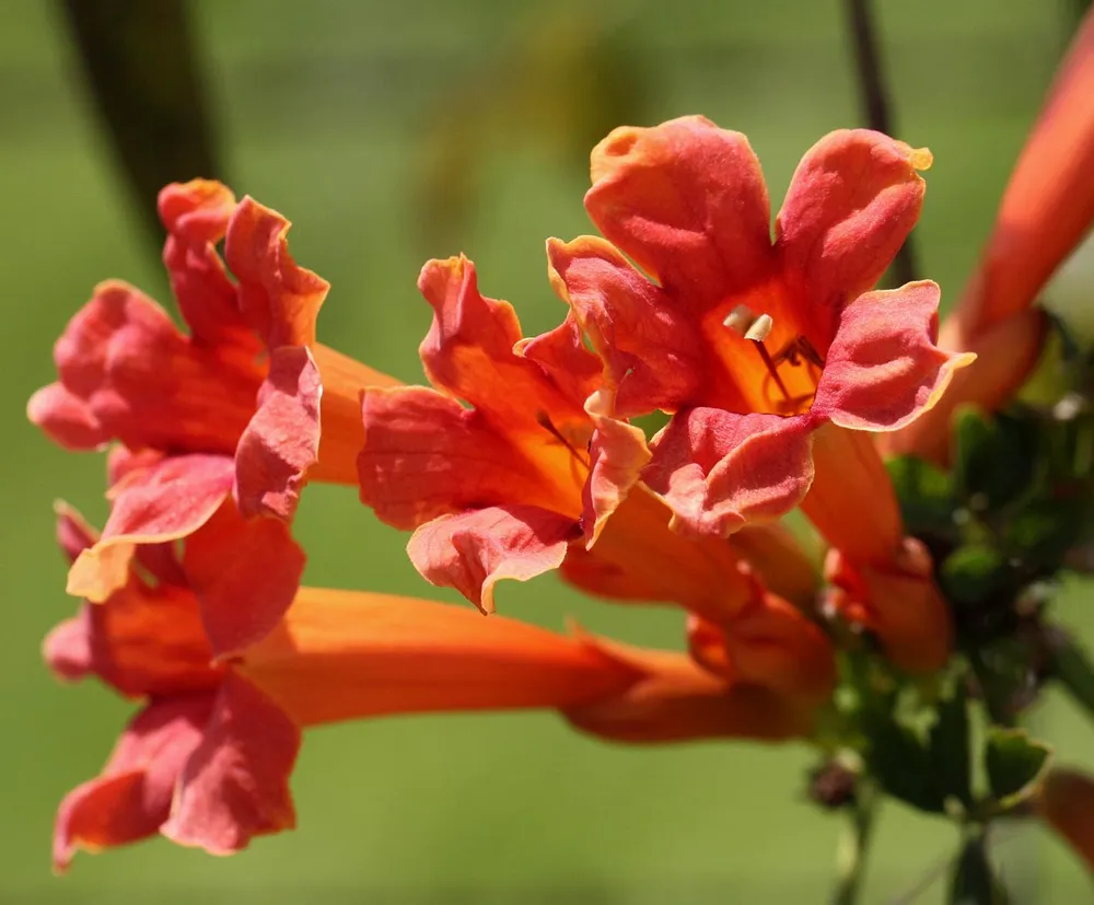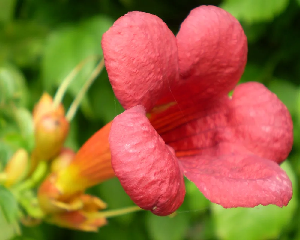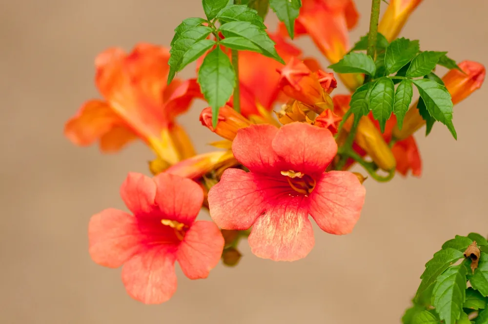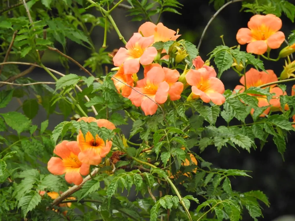 Кампсис укореняющийся Фламенко отличается от других сортов своей яркой окраской цветков.