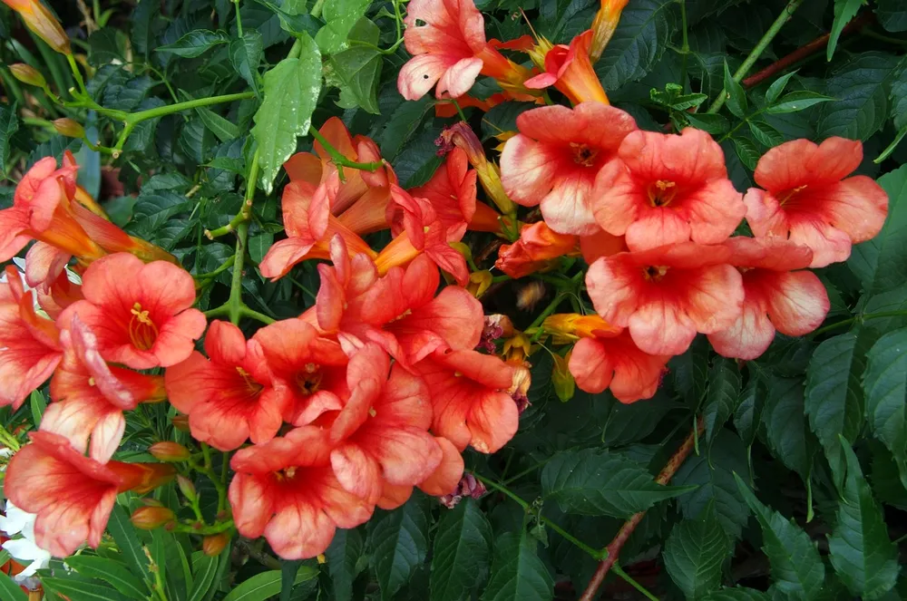 - Кампсис укореняющийся нуждается в регулярной подкормке, которая способствует обильному цветению и росту.