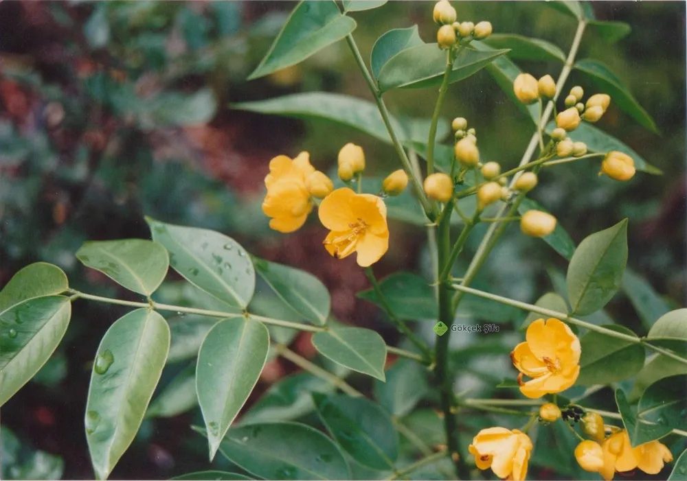 Известна своими красивыми желтыми цветами, которые появляются весной. Это дерево быстрорастущее и может достигать высоты 10-20 метров.