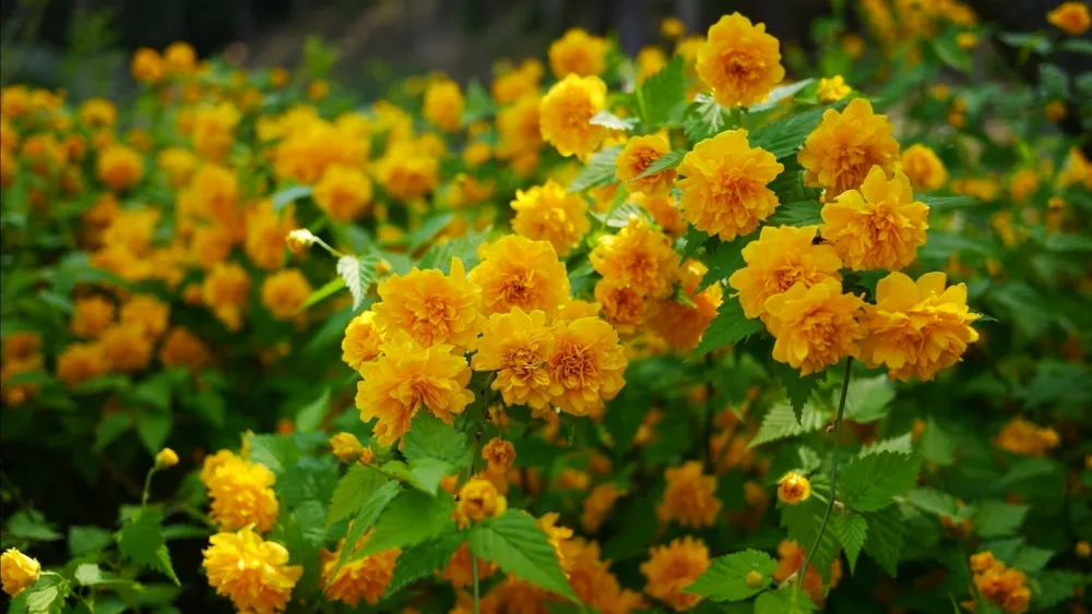 Среди популярных сортов керрии выделяются: * **Kerria japonica ‘Pleniflora’:** отличающийся пышными махровыми цветками, которые напоминают розы. * **Kerria japonica ‘Gold Coin’:** с золотисто-желтыми цветками, создающими яркий акцент в саду. * **Kerria japonica ‘Showa Nishiki’:** известен своими красочными двуцветными цветками с красными и белыми лепестками.