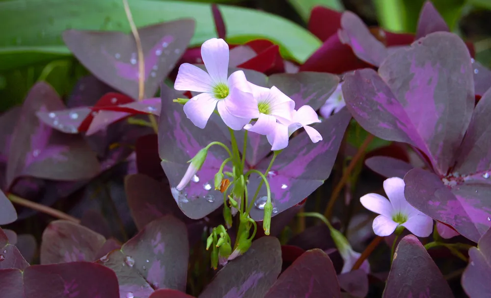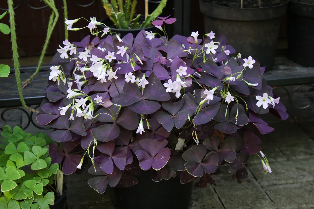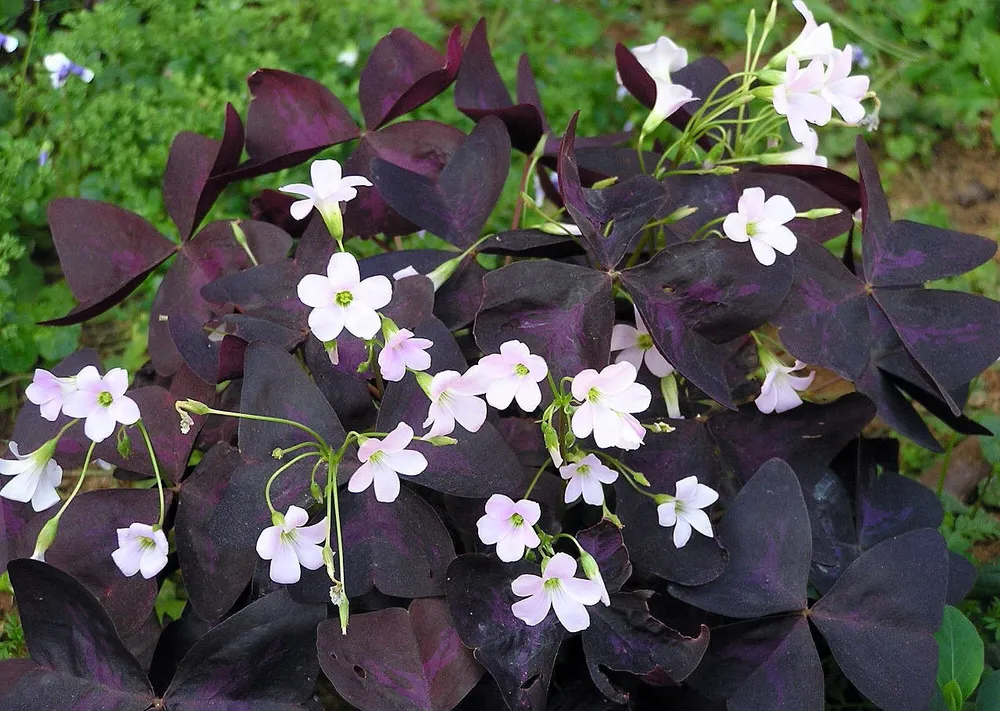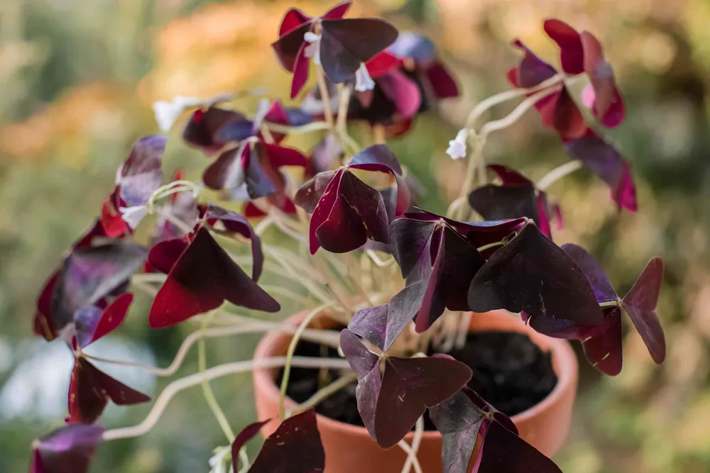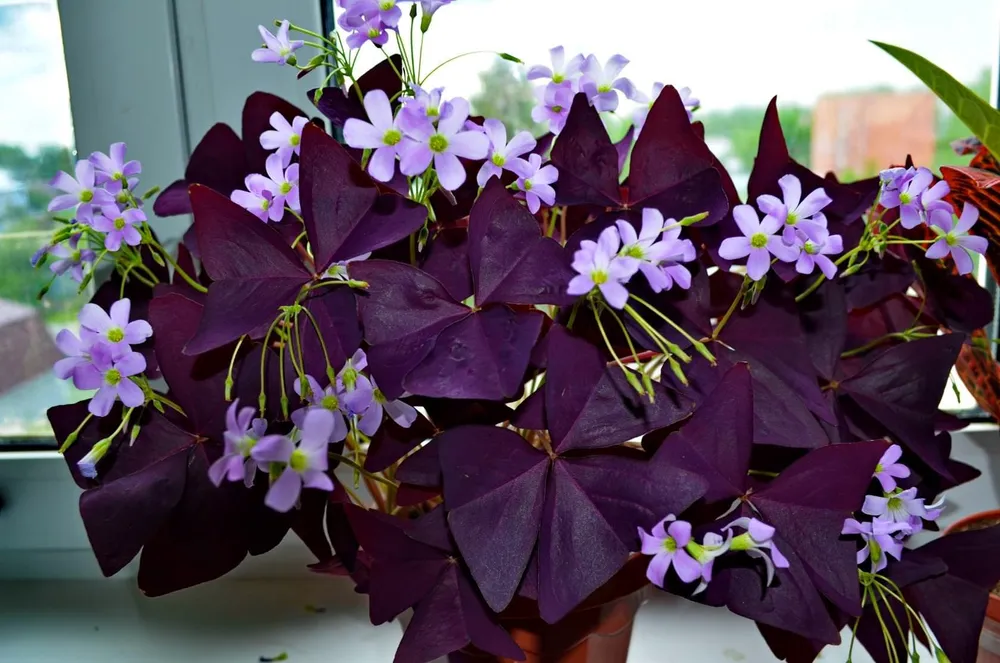 Например, Oxalis triangularis отличается необычными листьями пурпурного цвета, а Oxalis deppei – яркими розовыми или белыми цветами.